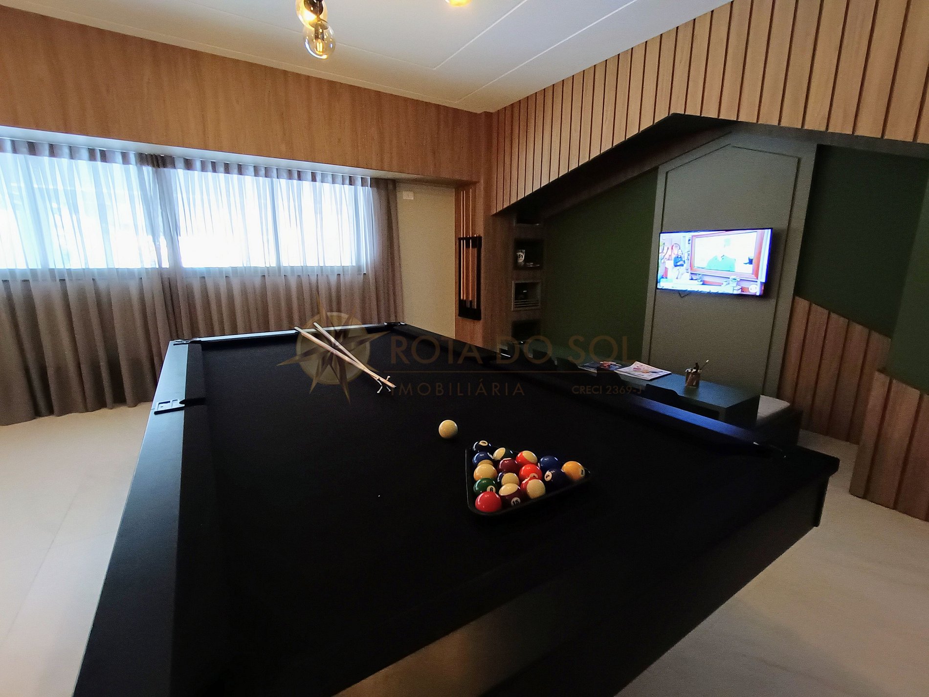 O condomínio conta com elevador, piscina compartilhada e sala de jogos, além de vaga dupla de garagem.