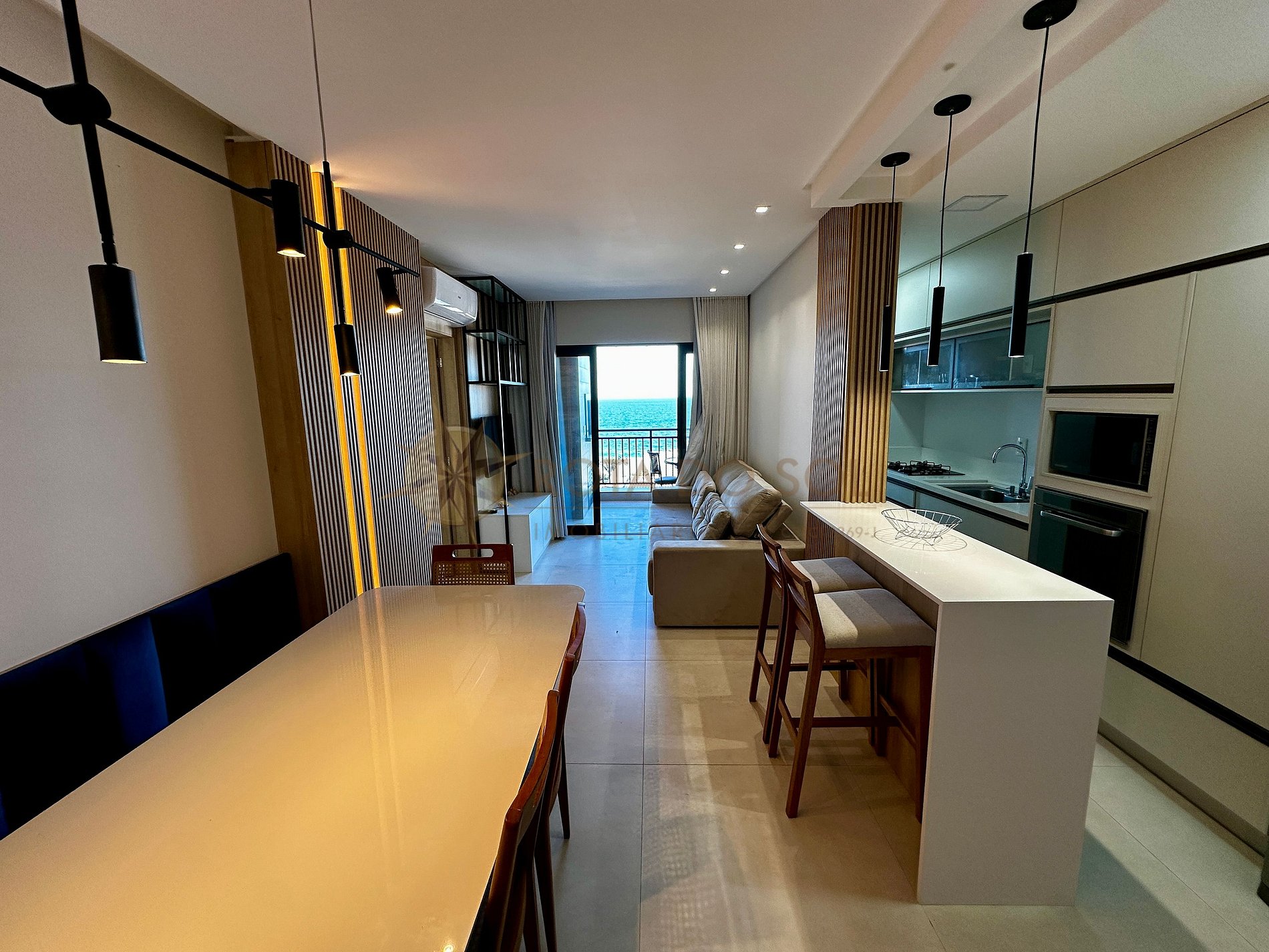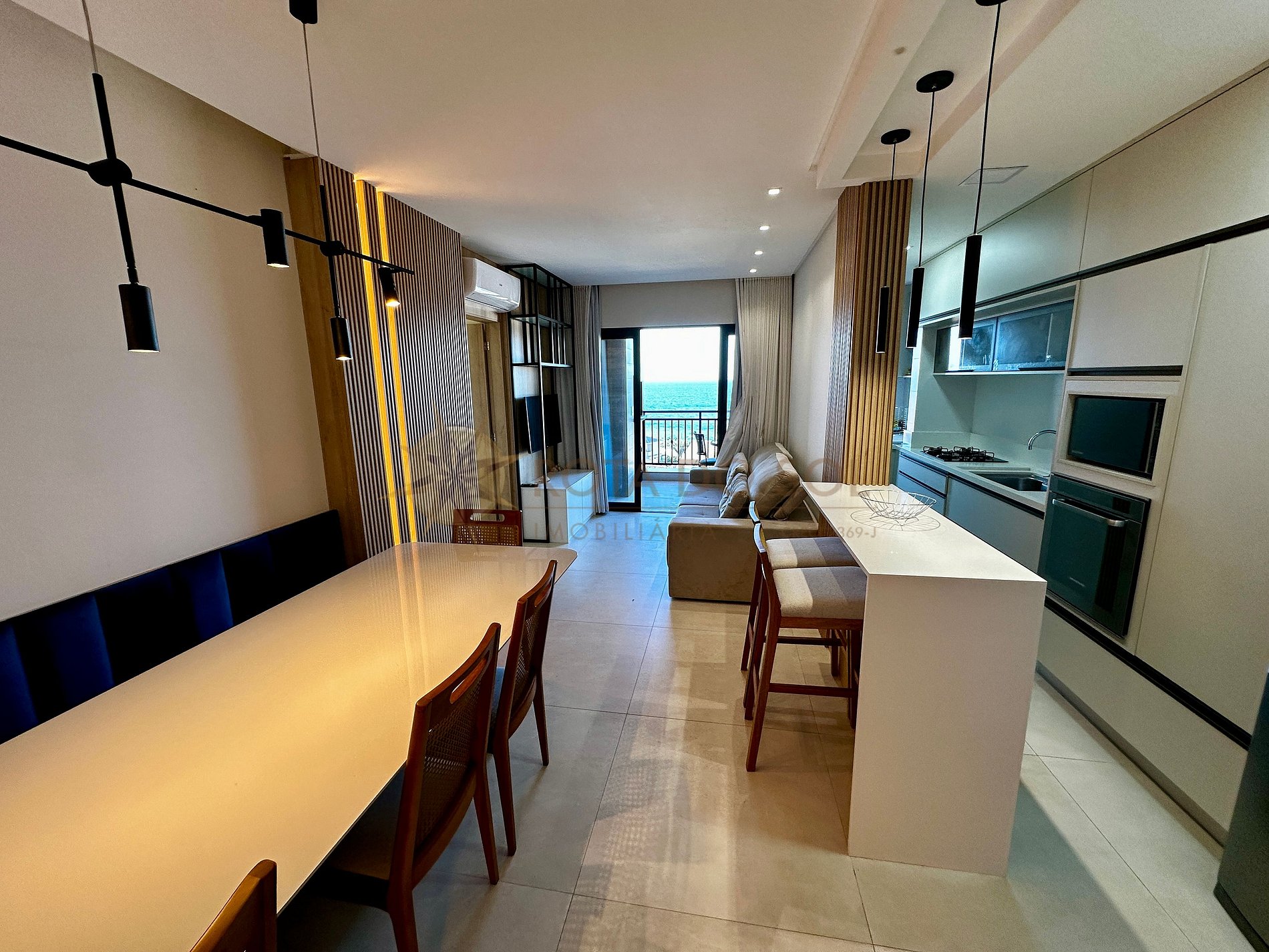 Apartamento moderno e completo no centro de Bombinhas, a apenas 70m do mar! Possui 3 quartos (Sendo 1 suíte), ar-condicionado, sacada com churrasqueira e vista mar. Condomínio com piscina compartilhada, elevador e sala de jogos. Perfeito para famílias!