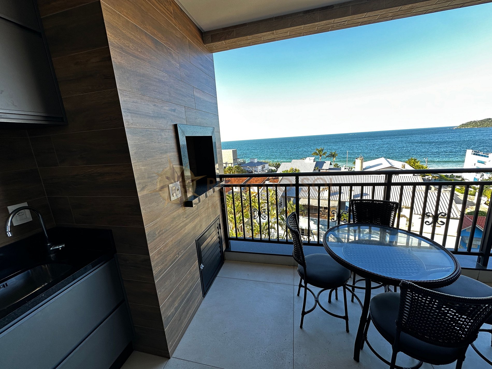 A sacada com churrasqueira e uma linda vista para o mar completam o cenário perfeito para relaxar e apreciar o melhor de Bombinhas.