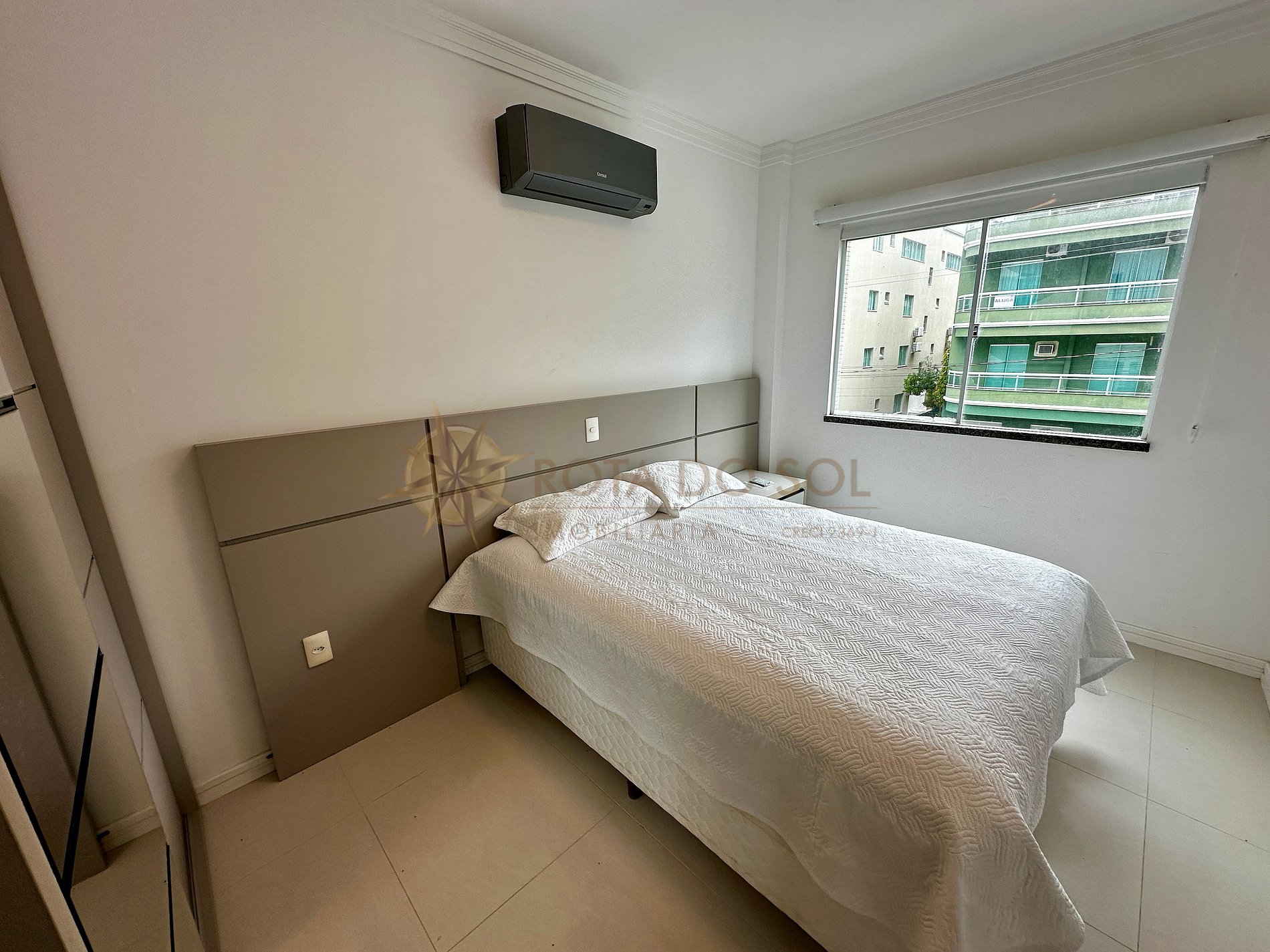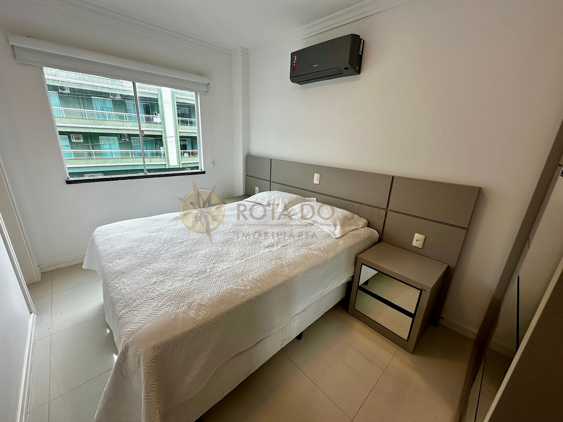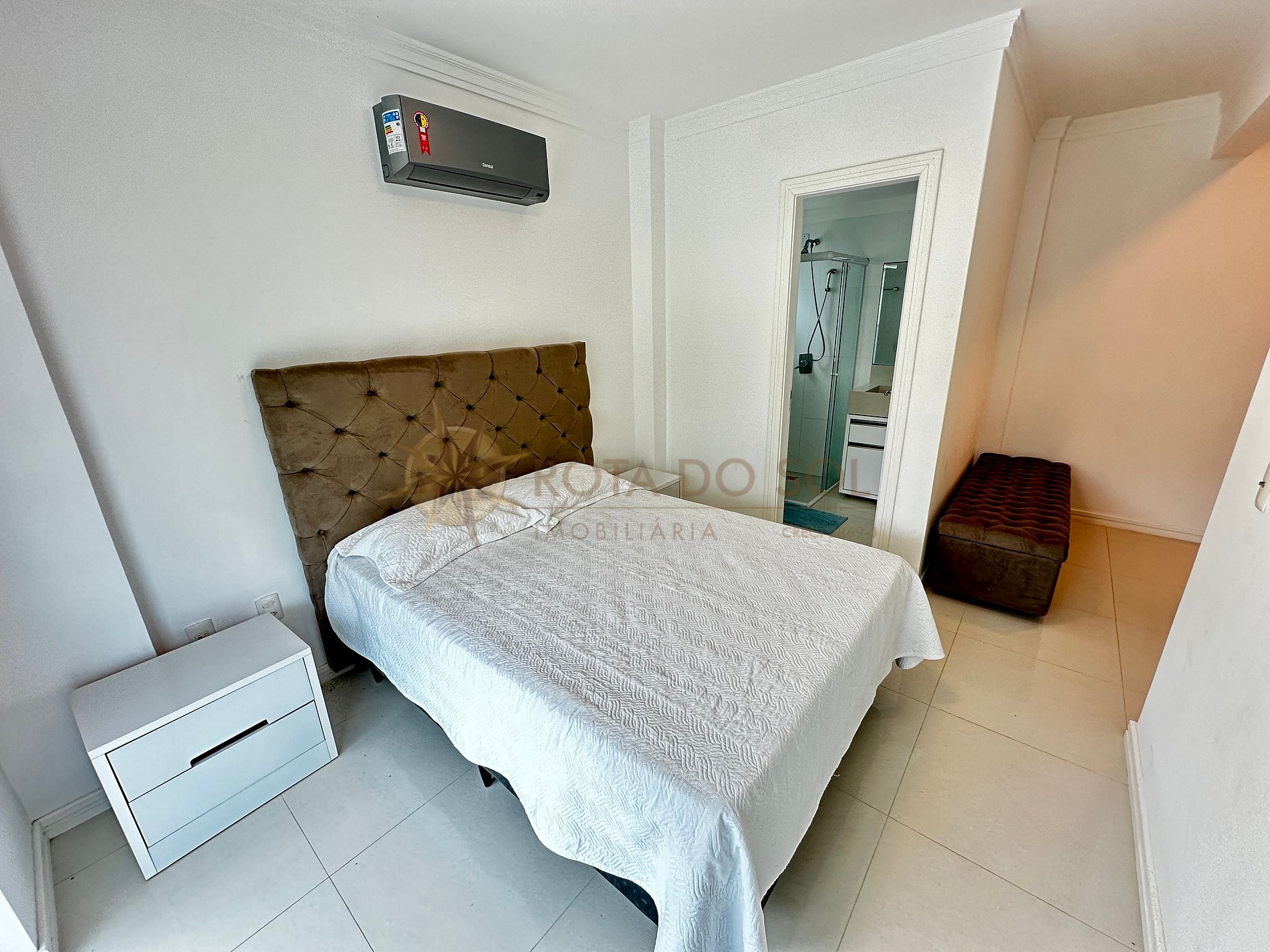 01 suíte com cama de casal box queen e ar-condicionado split;