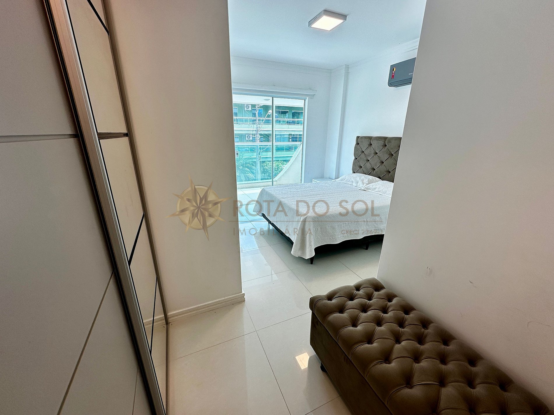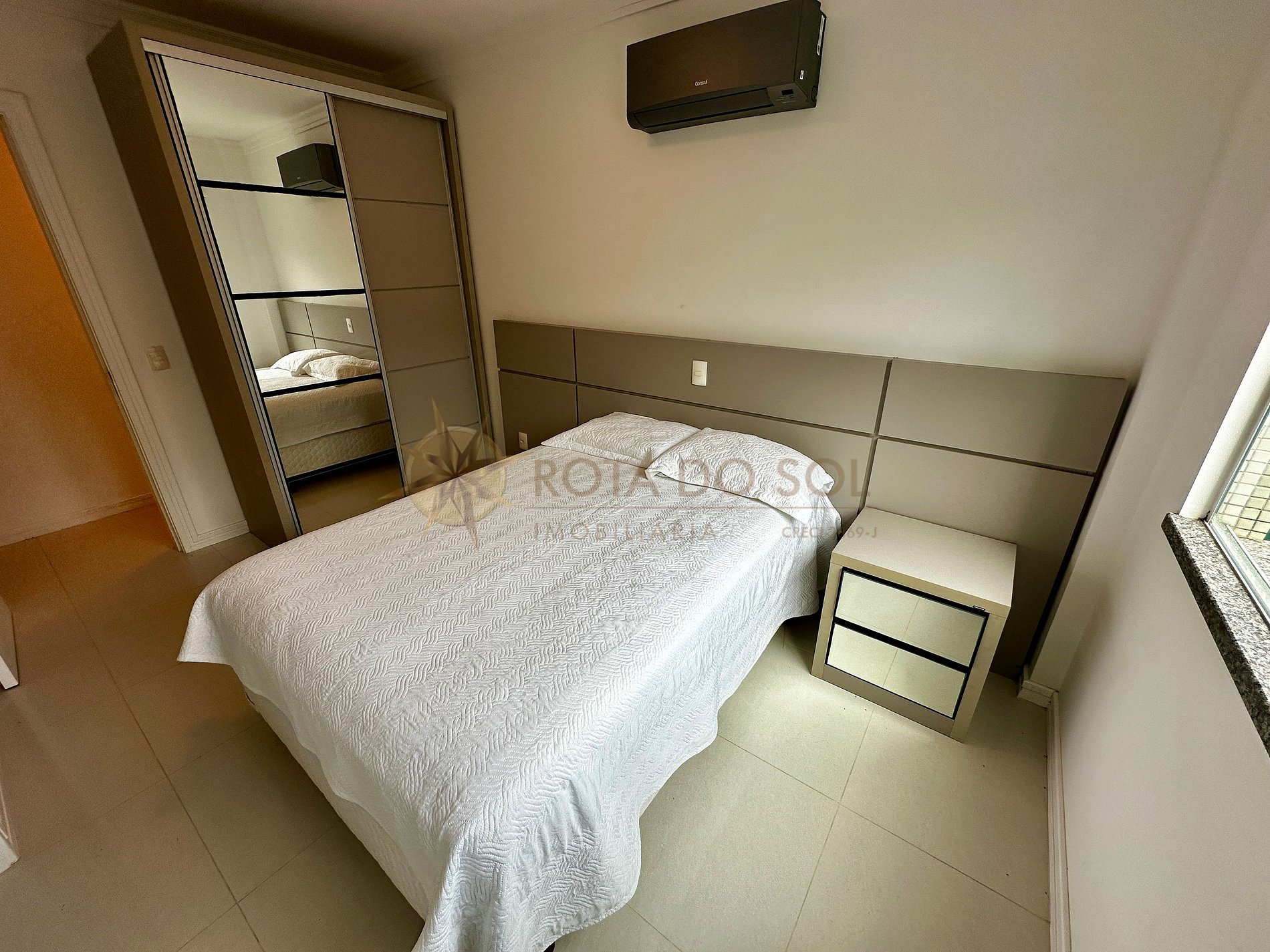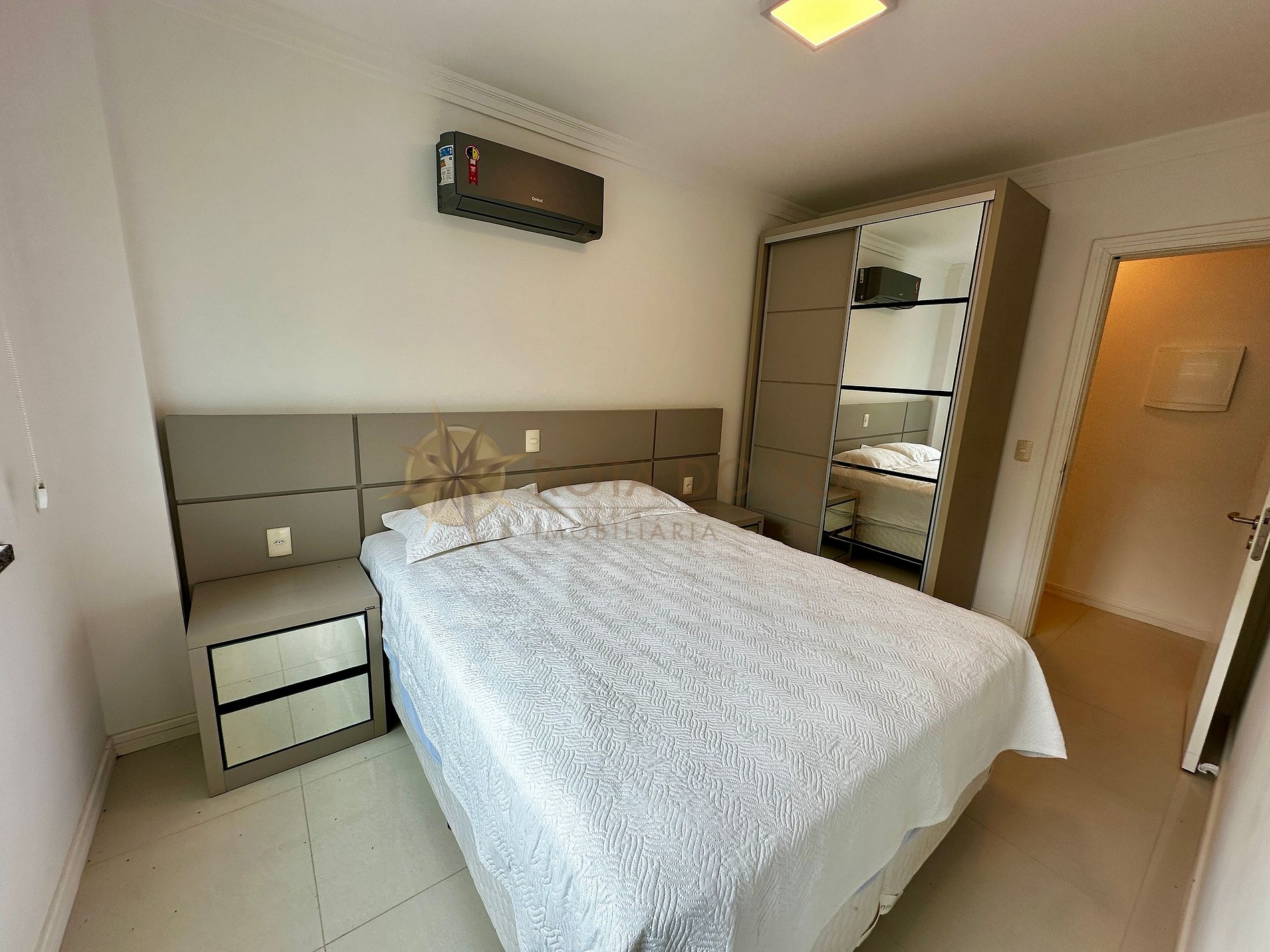 01 suíte com cama de casal box queen e ar-condicionado split;