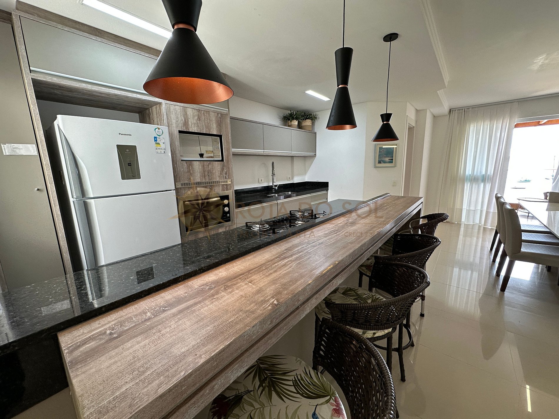 Fully equipped kitchen integrated with the dining area