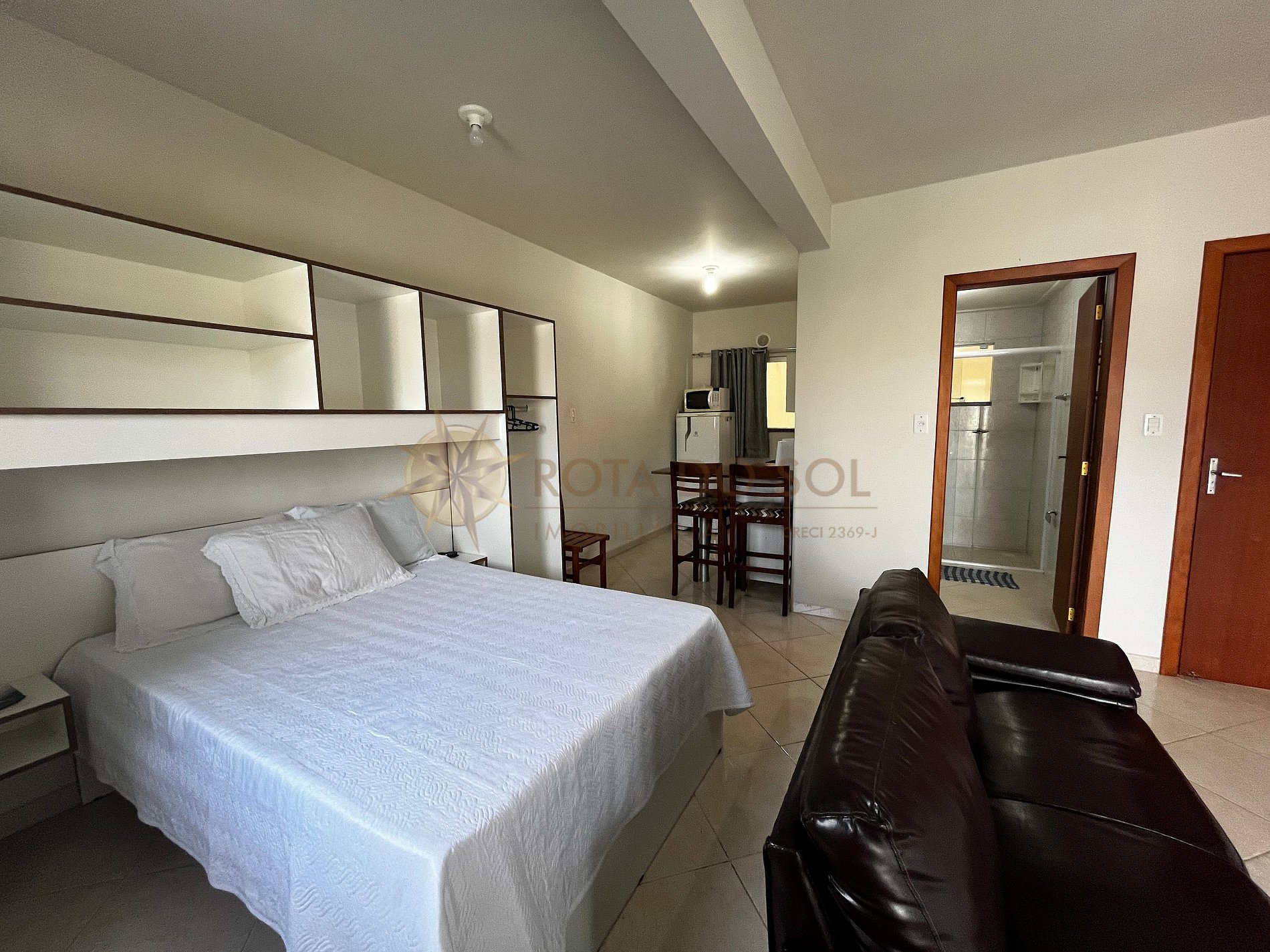 Apartamento loft com mobília bem simples acomoda 2 pessoas;