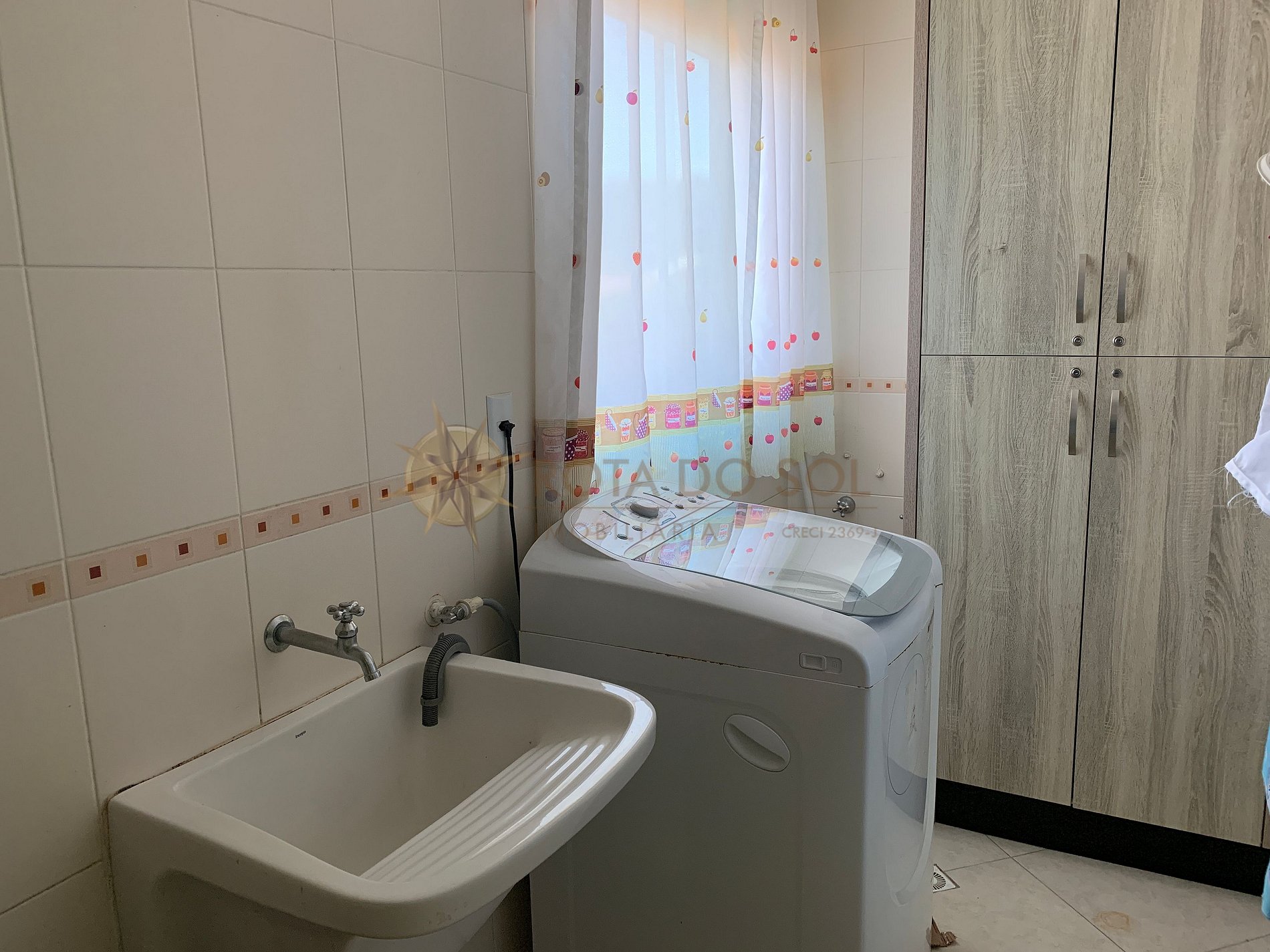 Área de serviço com máquina de lavar roupas