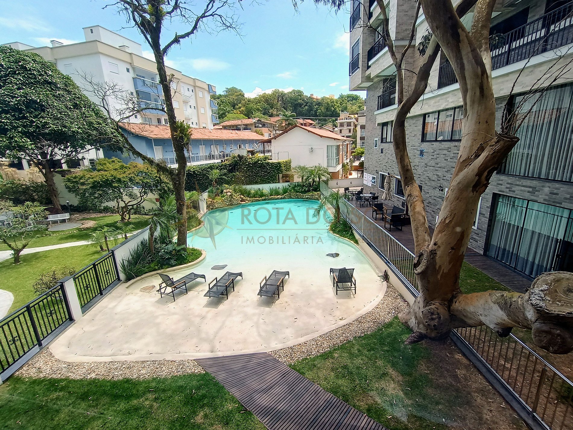 Condomínio com piscina compartilhada;