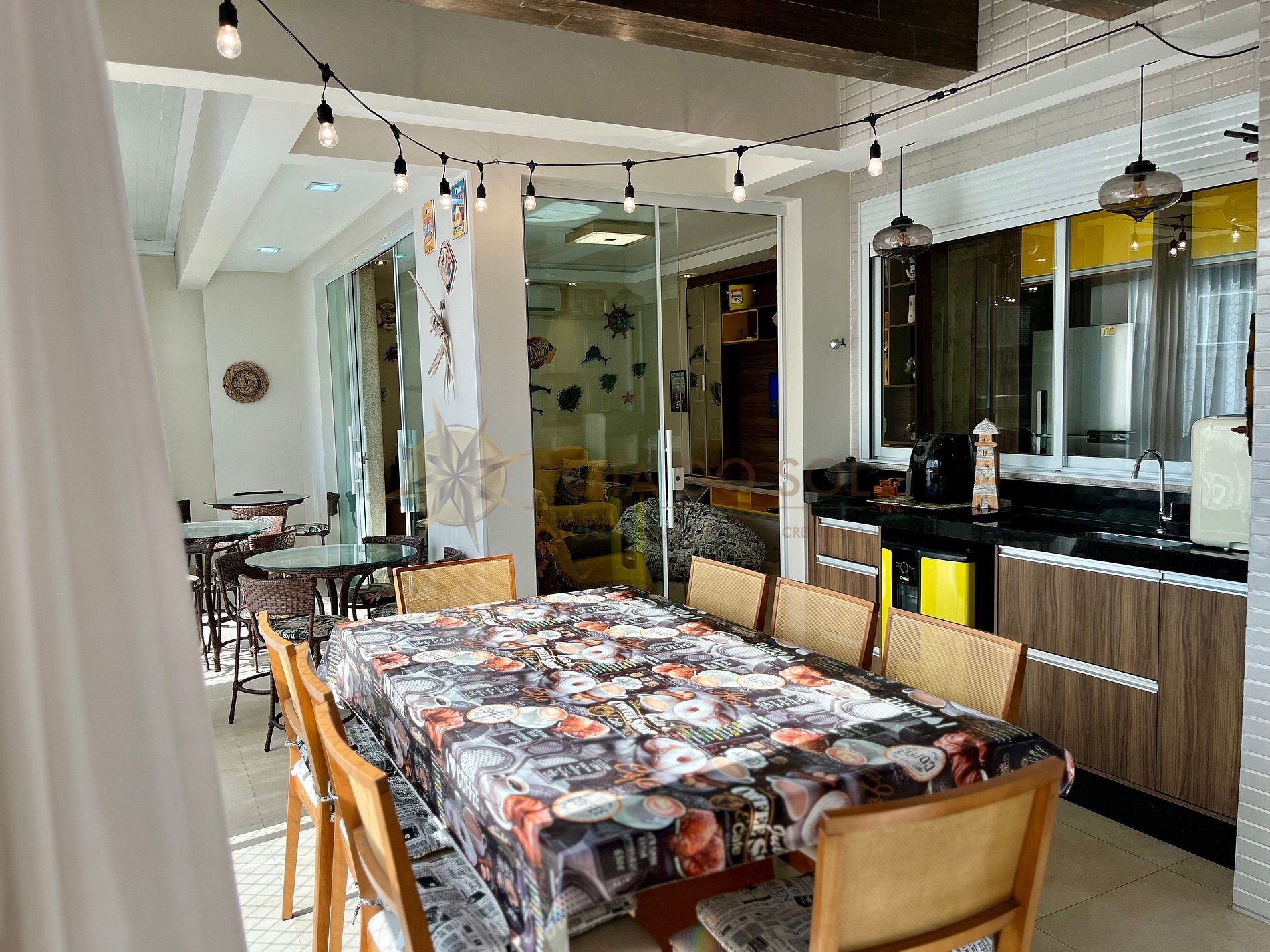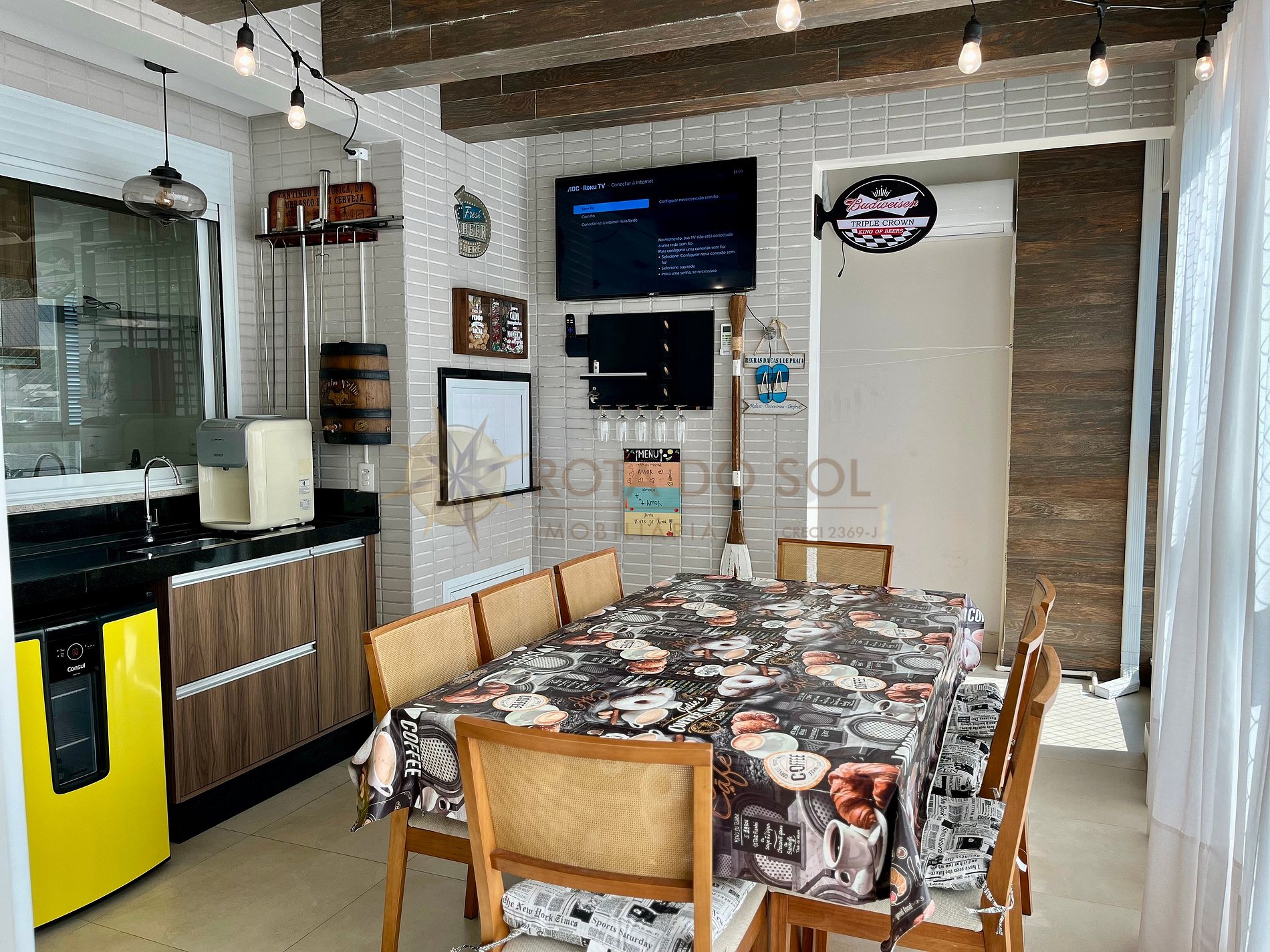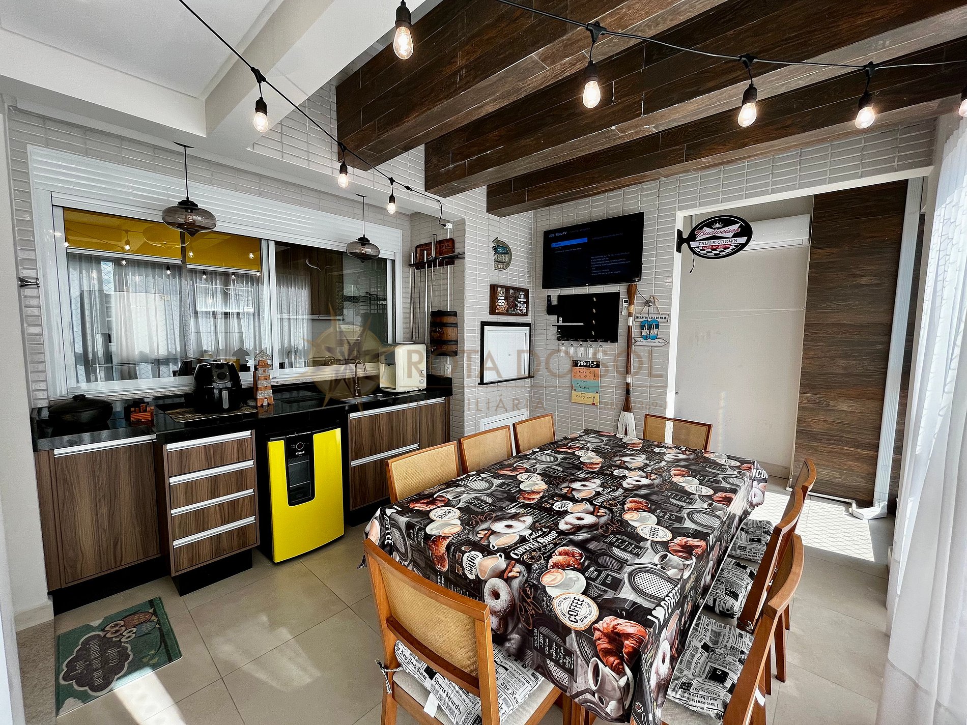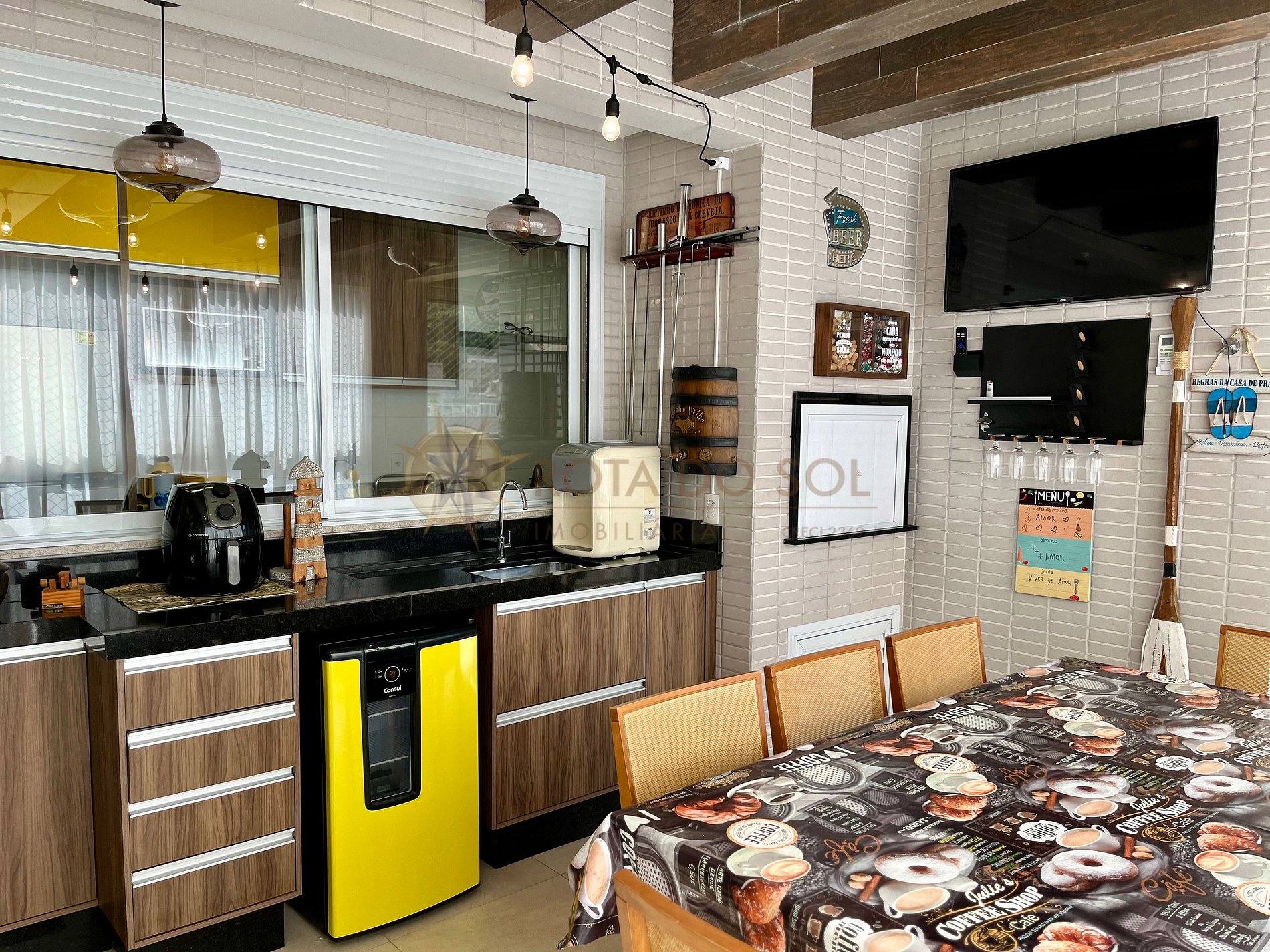 - Espaço gourmet com churrasqueira e mobília com ar condicionado