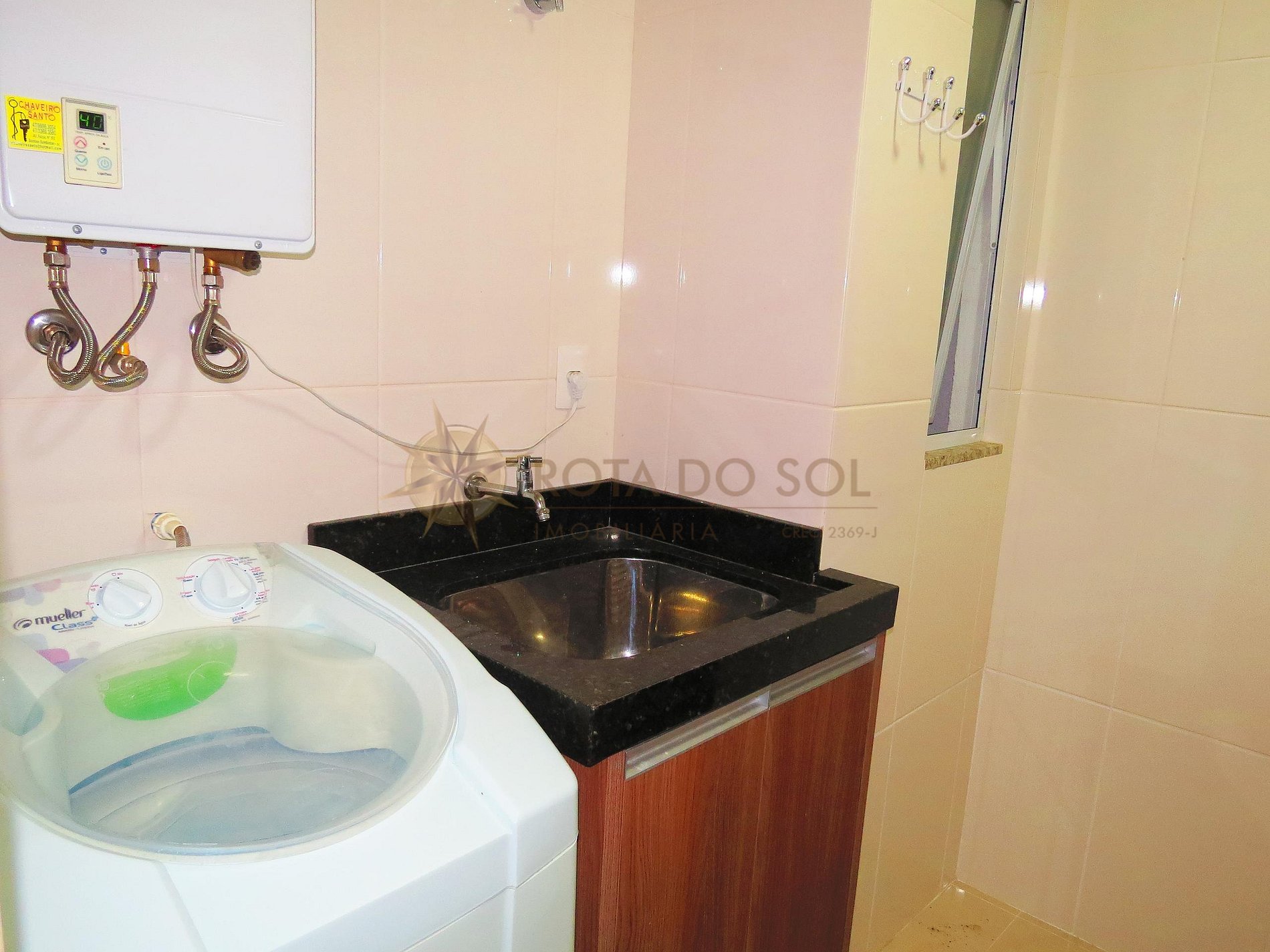 Área de serviço com máquina de lavar roupas;