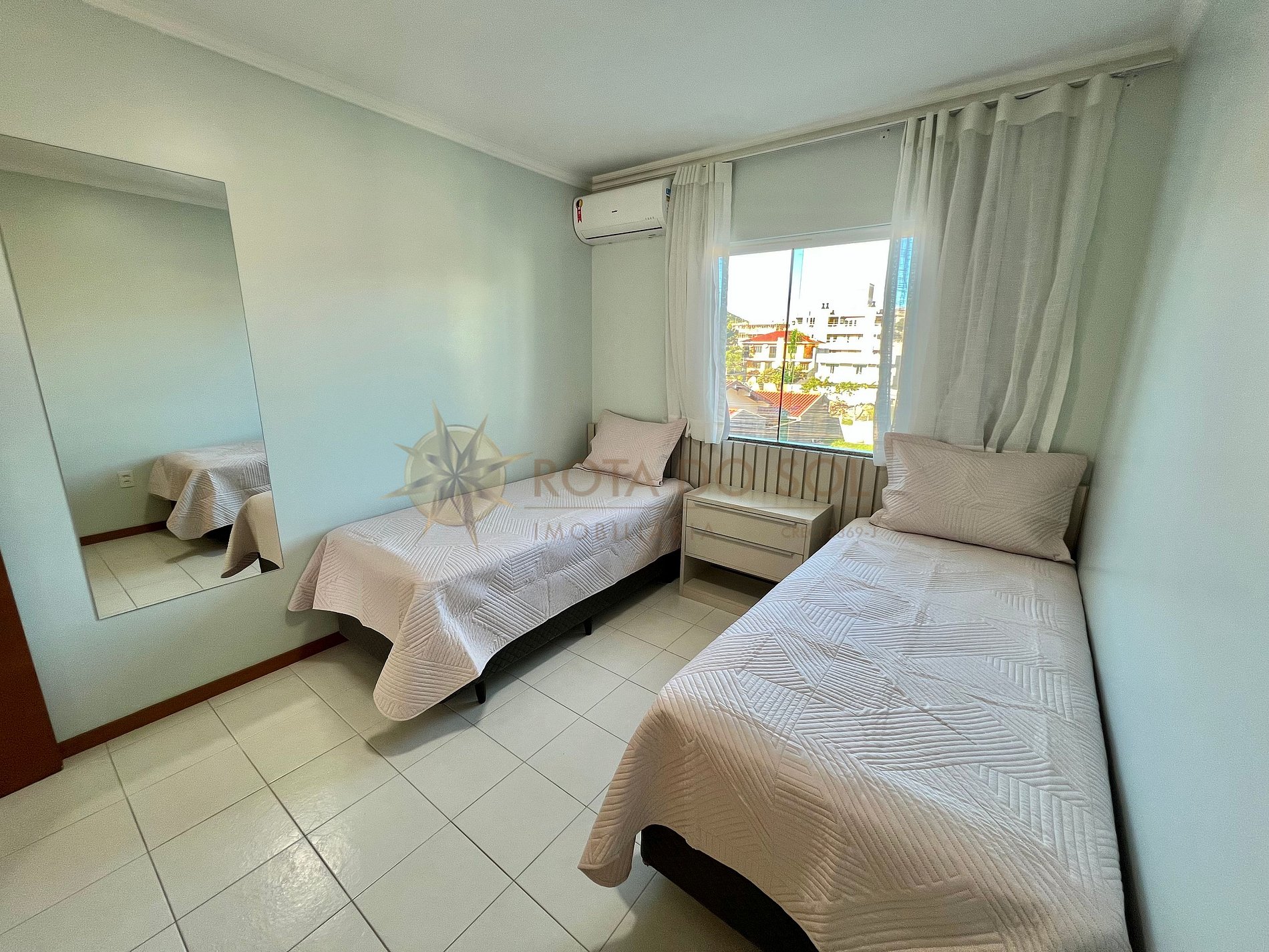 - 01 Dormitório com 02 camas de solteiro e ar condicionado Split