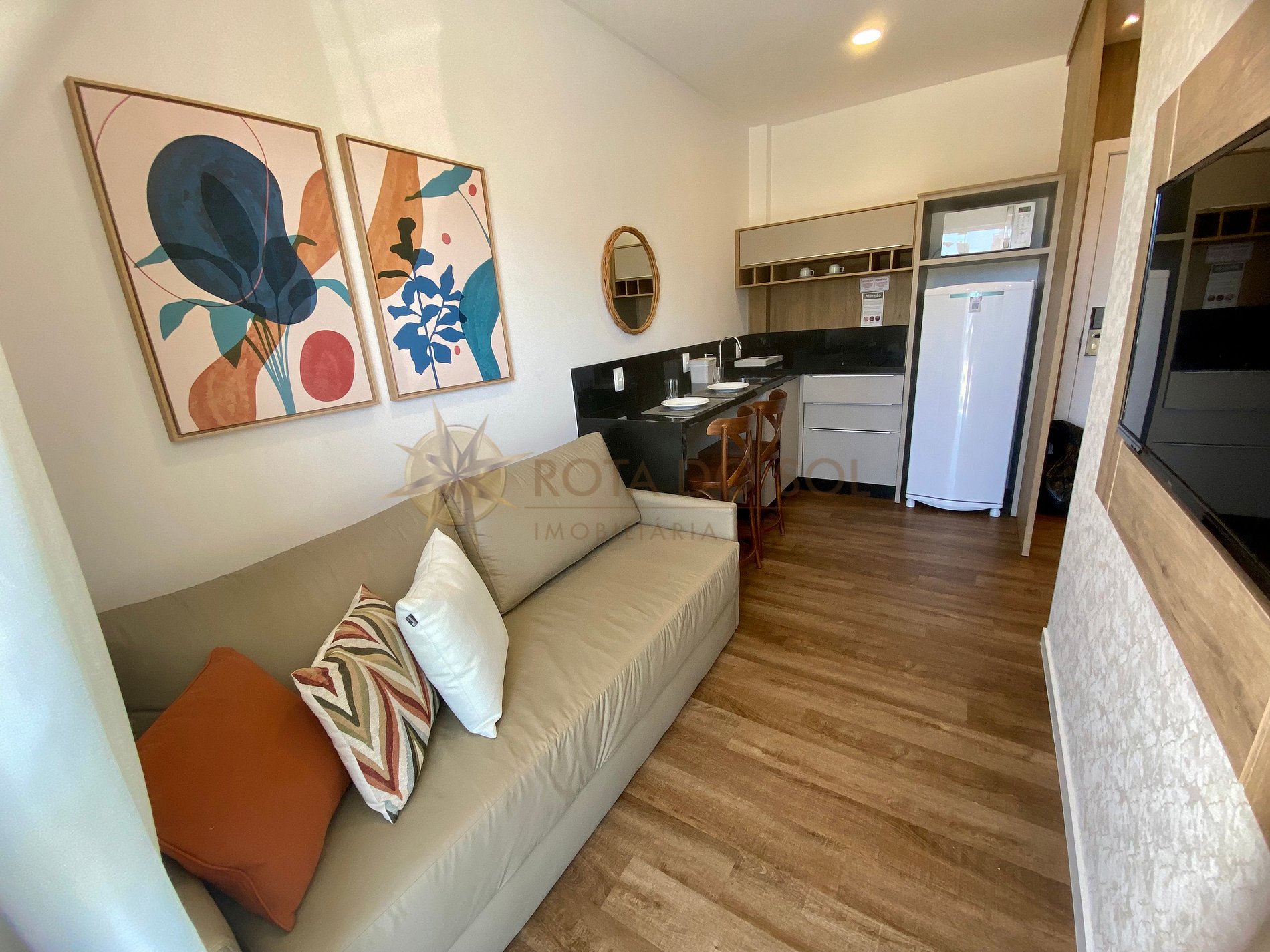 Apartamento com ar condicionado no quarto e na sala, sacada, cozinha equipada para refeições rápidas. O condomínio conta com área de lazer no rooftop, com piscina para adultos com vista ao mar, jacuzzis, piscina infantil, playground, Restaurante.