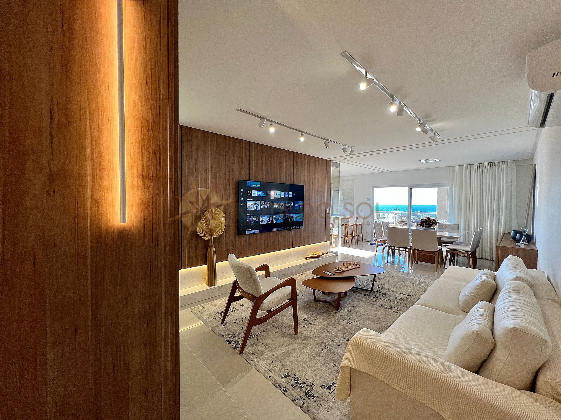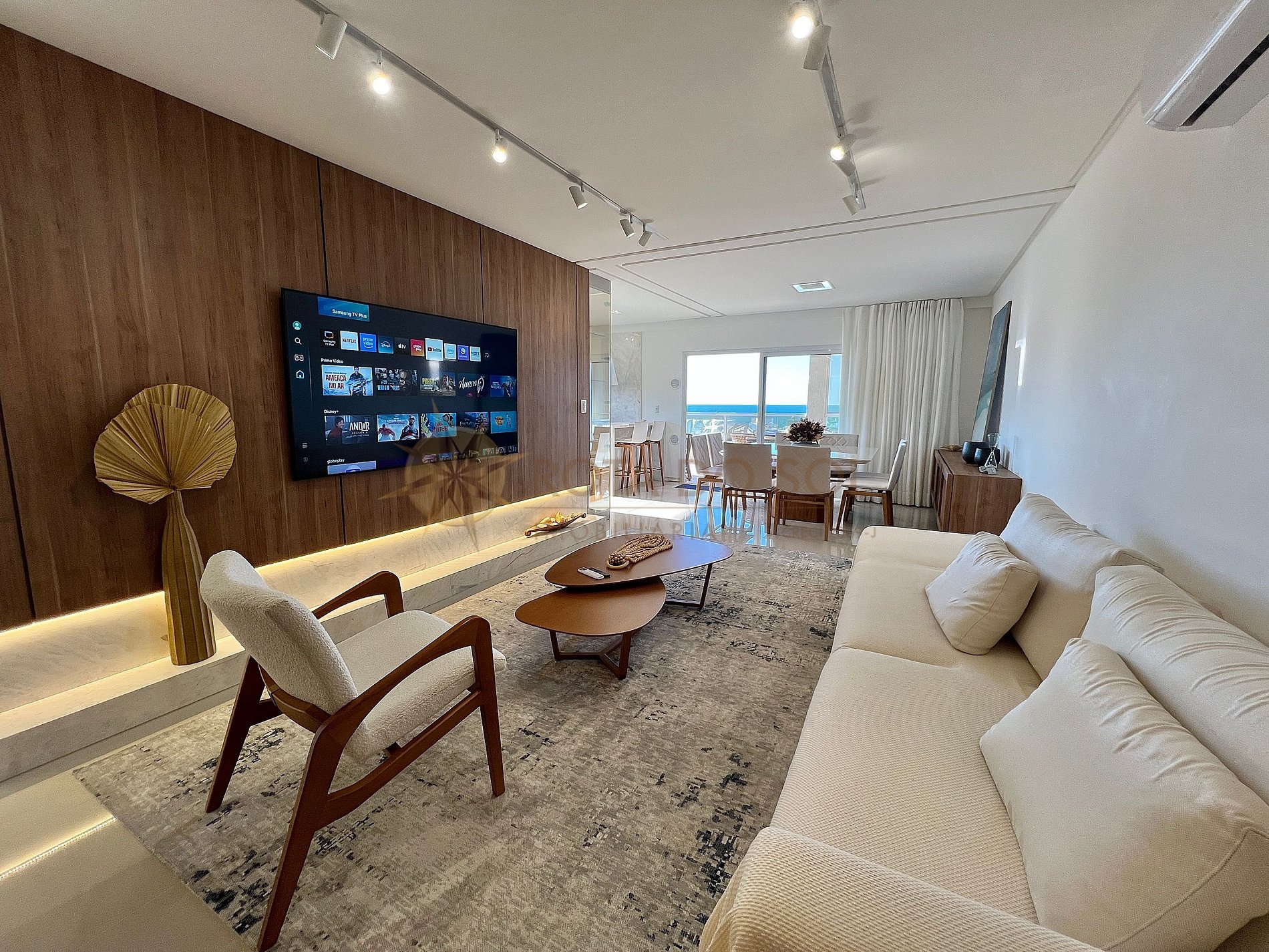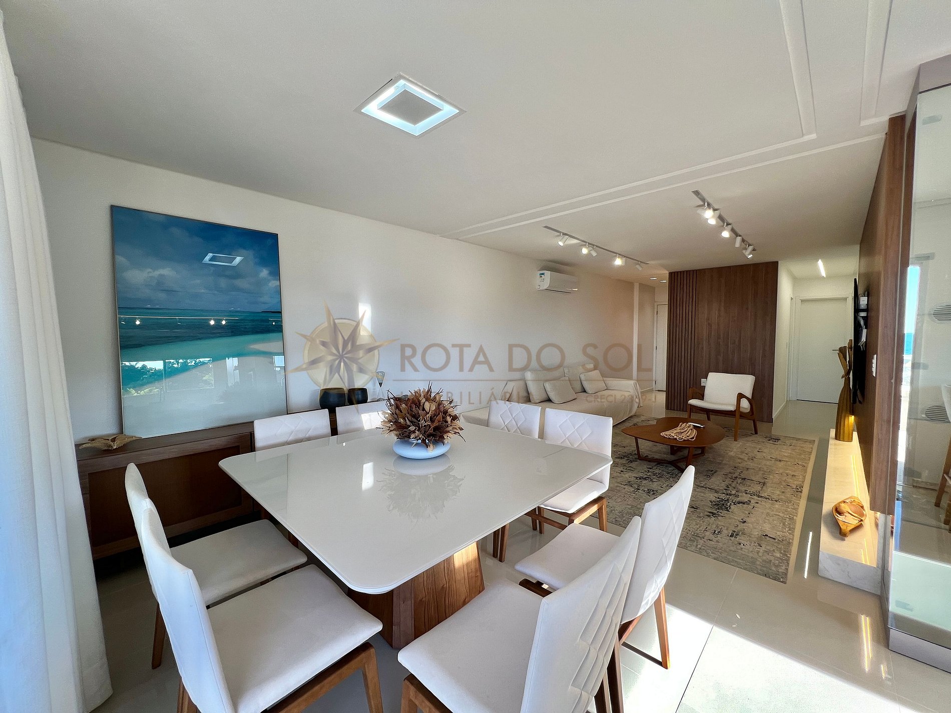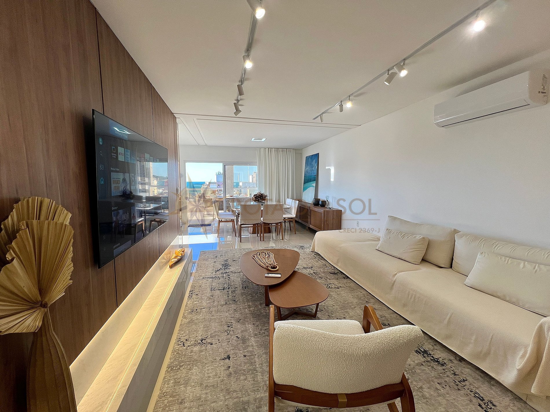 - Sala de estar integrada com sala de jantar e ar condicionado;