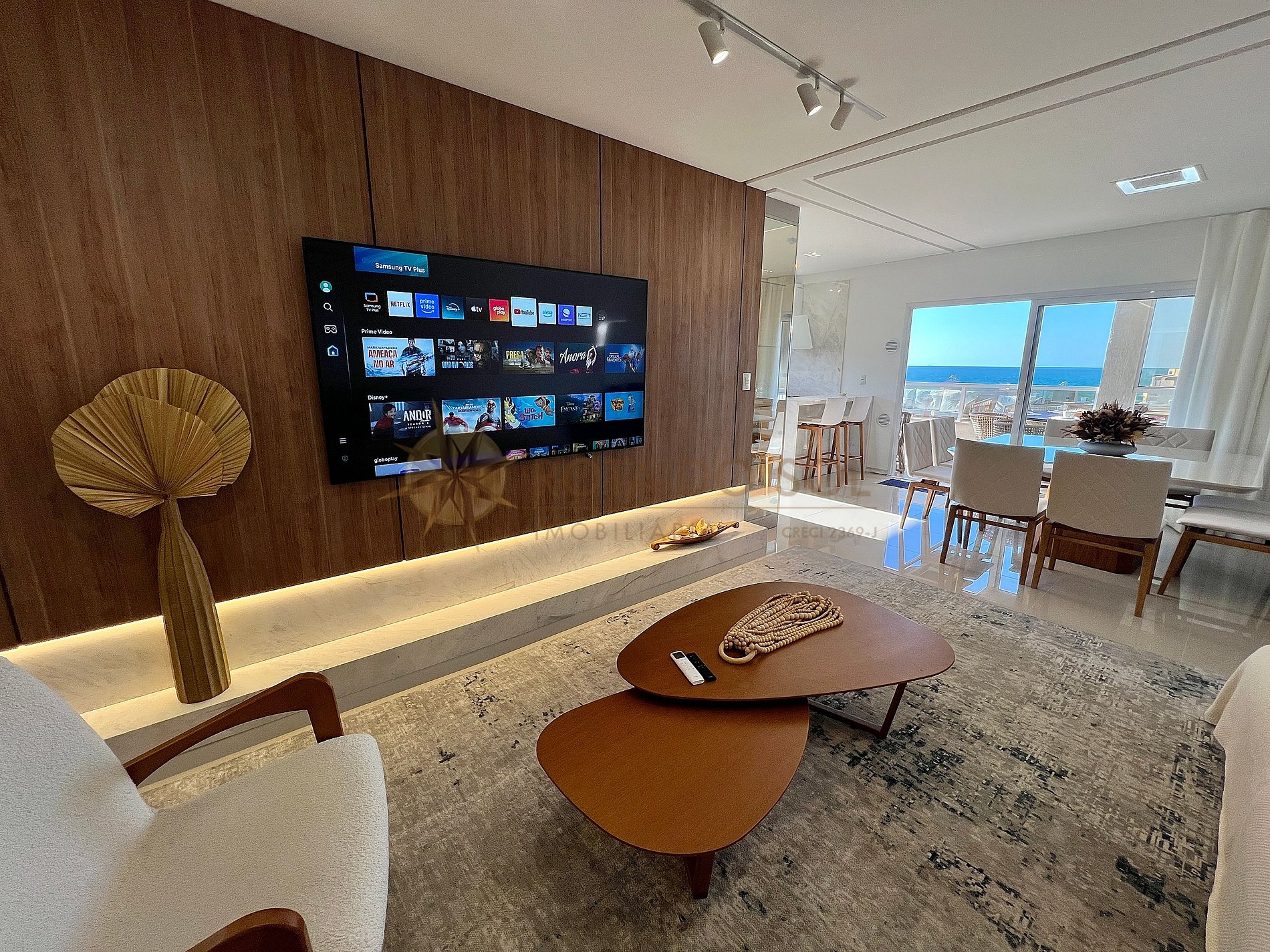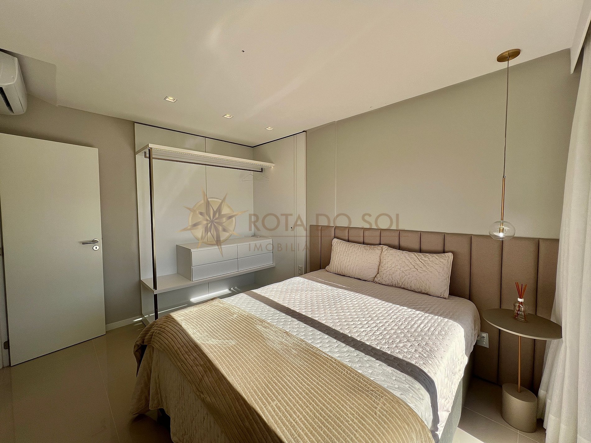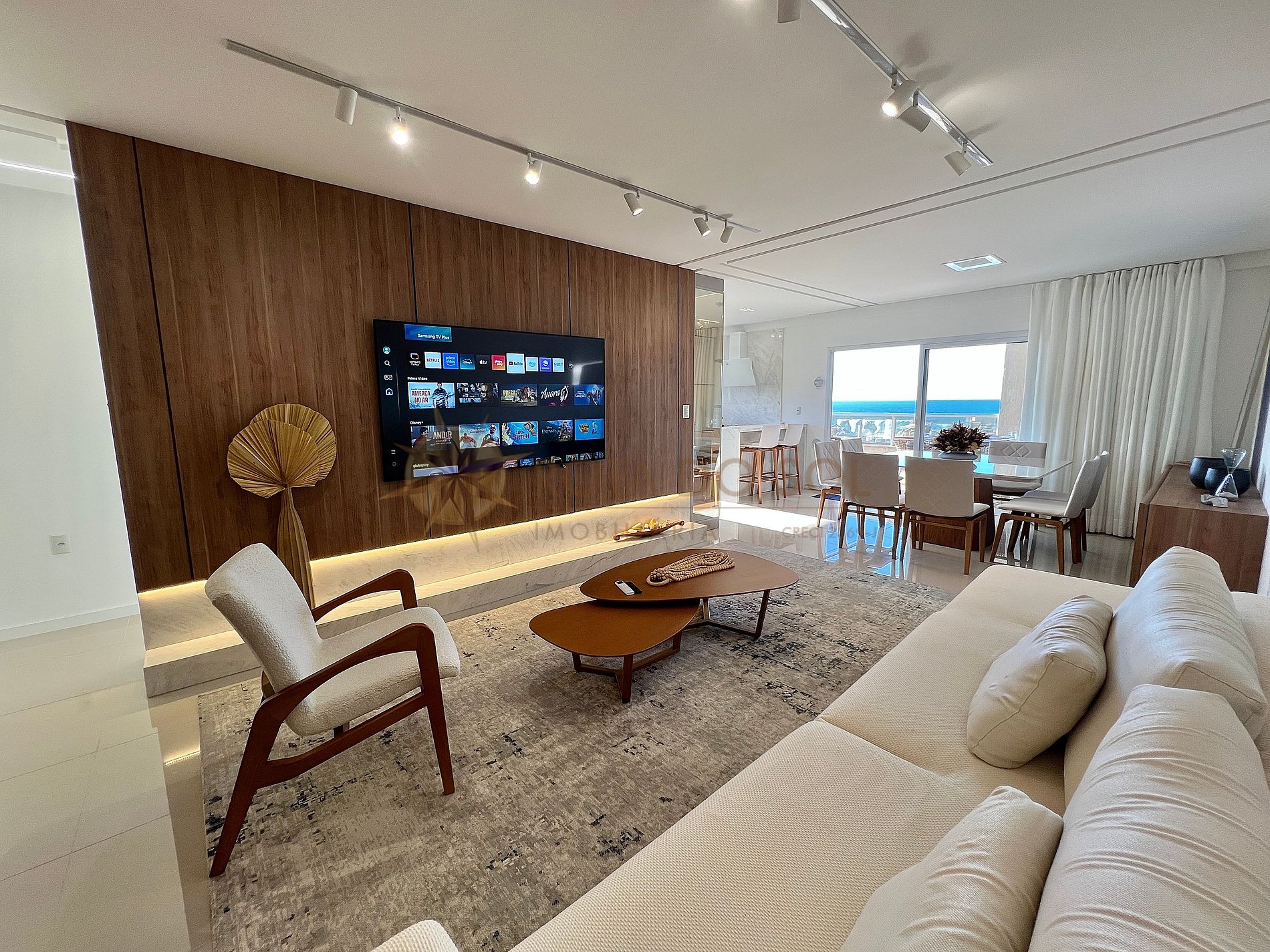 - Sala de estar integrada com sala de jantar e ar condicionado;