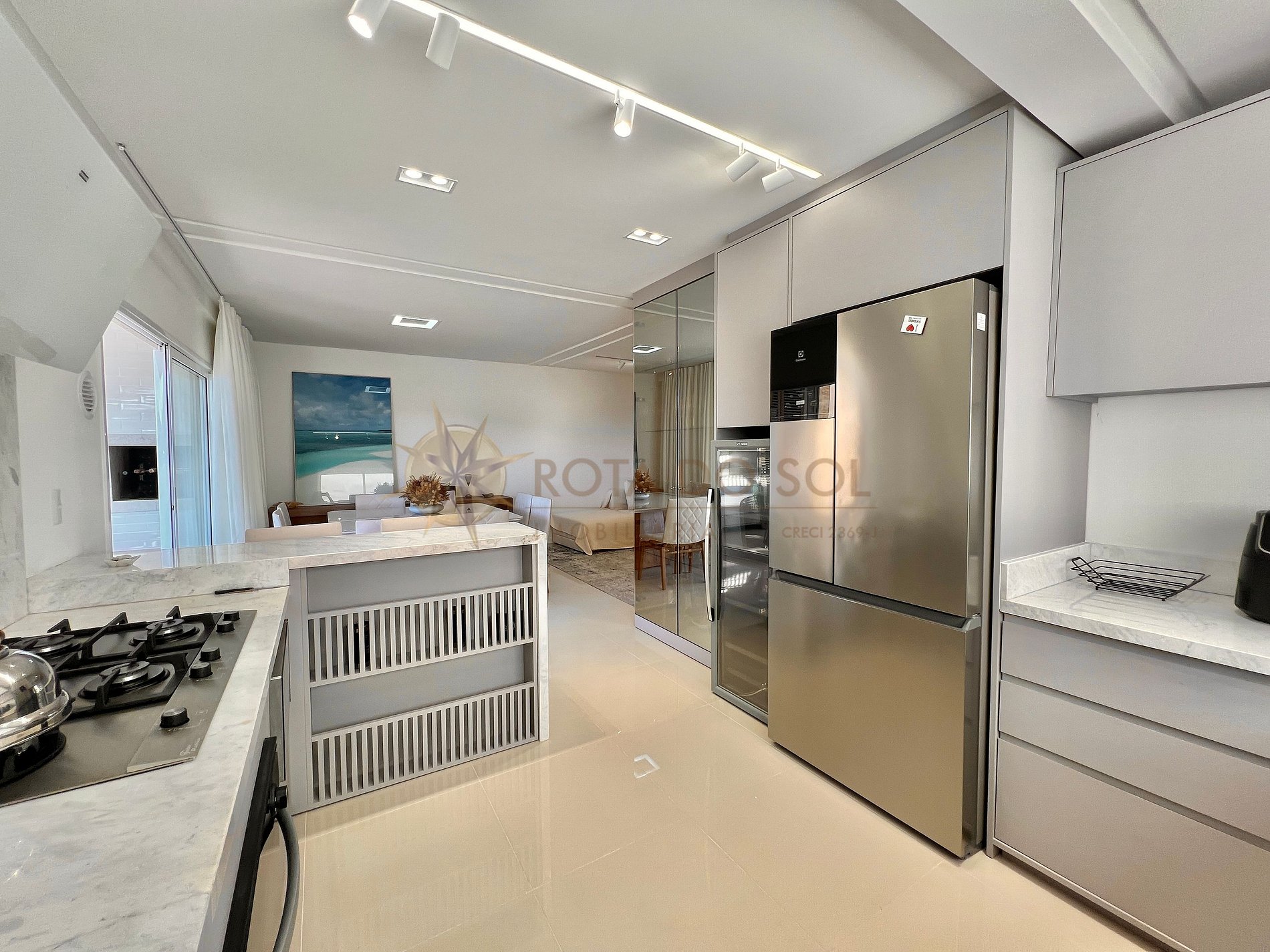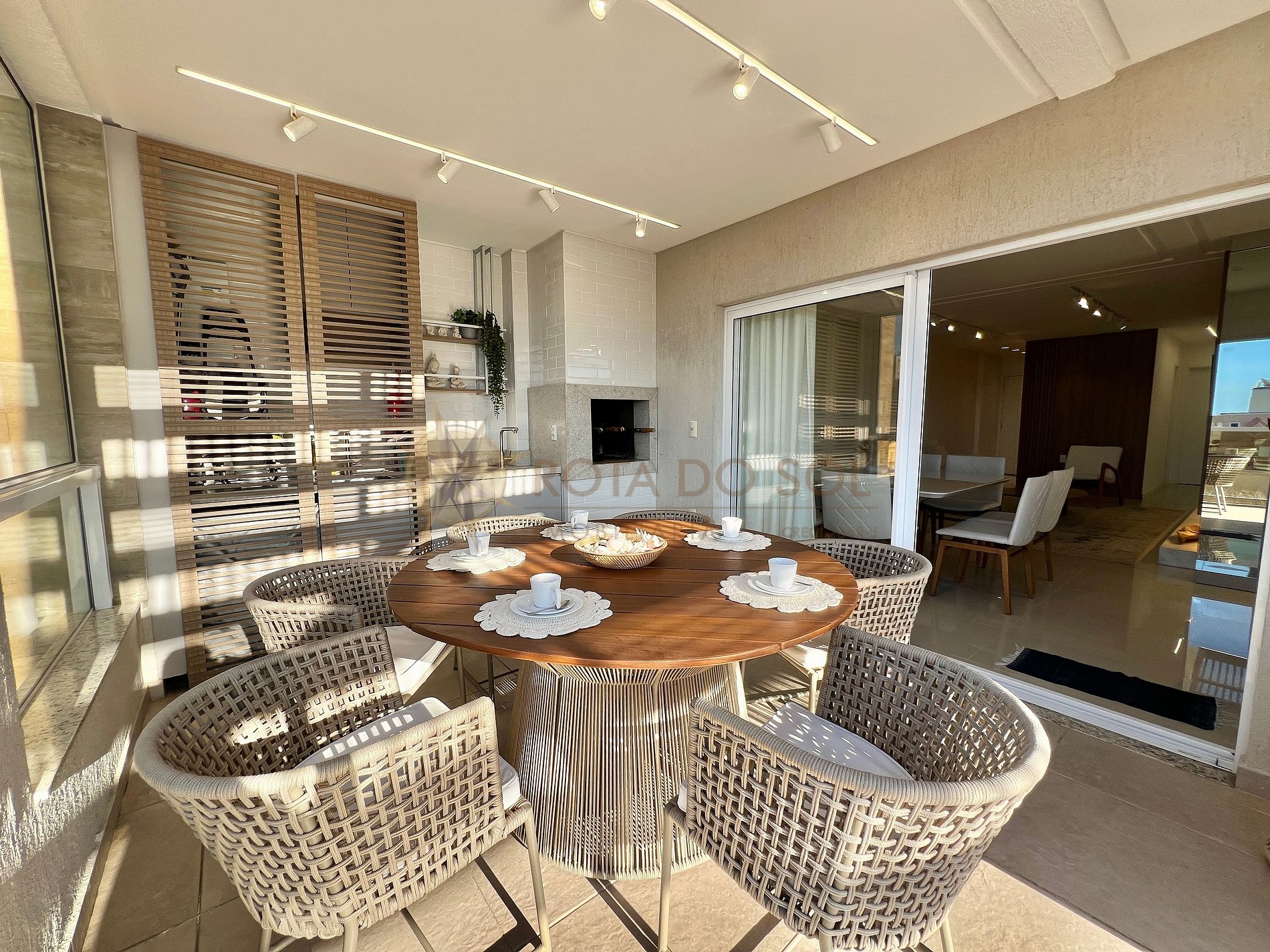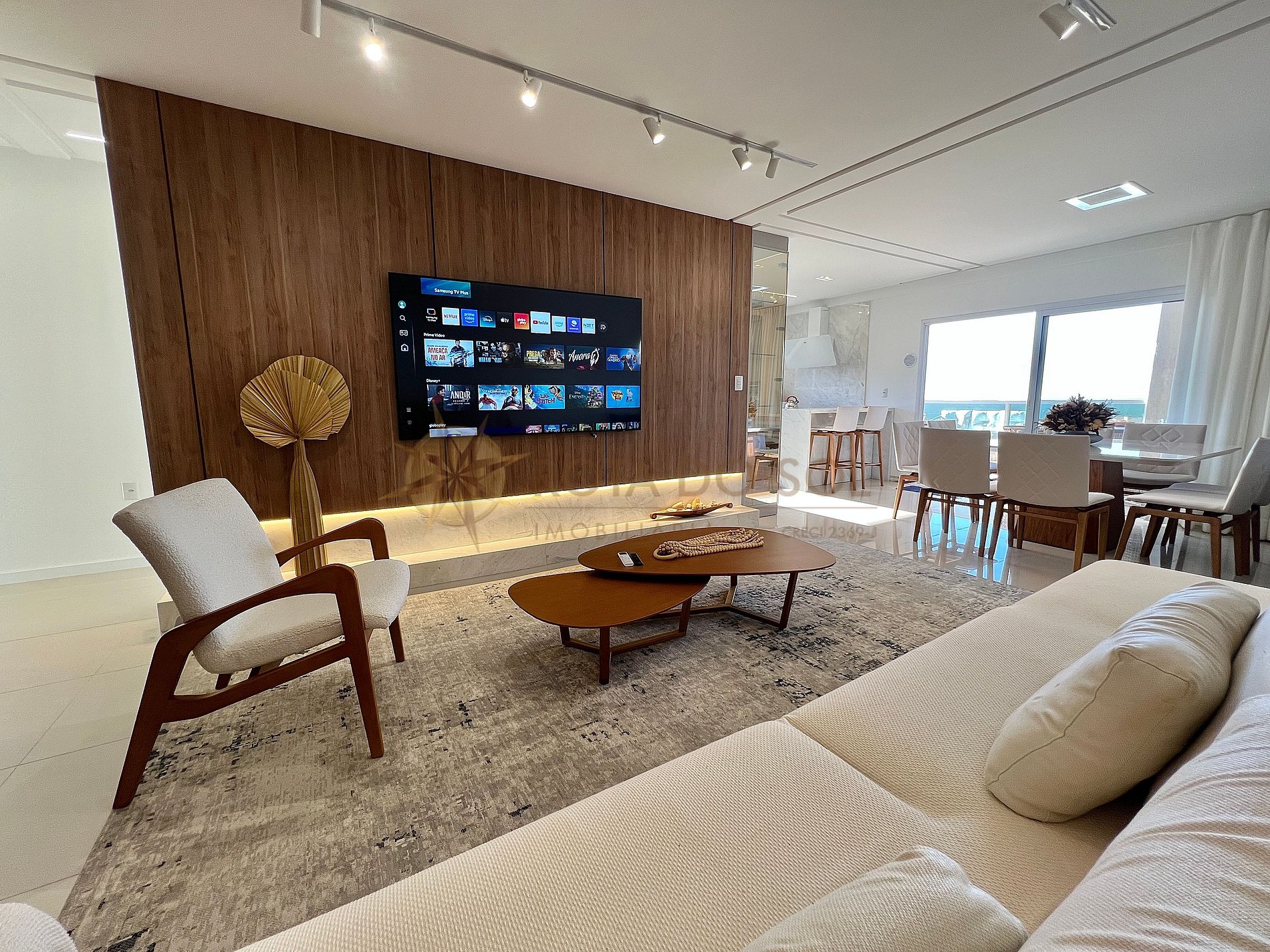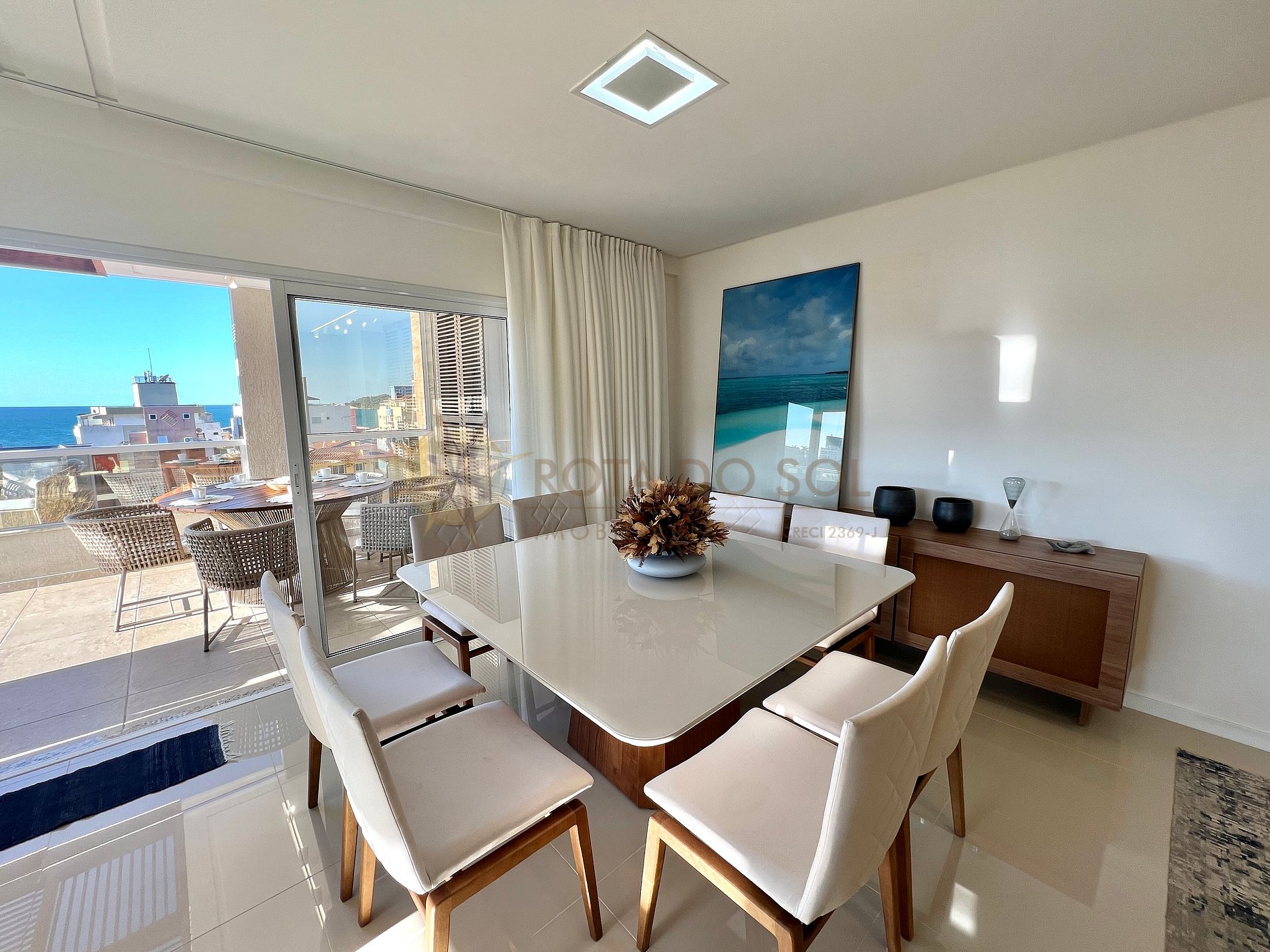 - Sala de estar integrada com sala de jantar e ar condicionado;