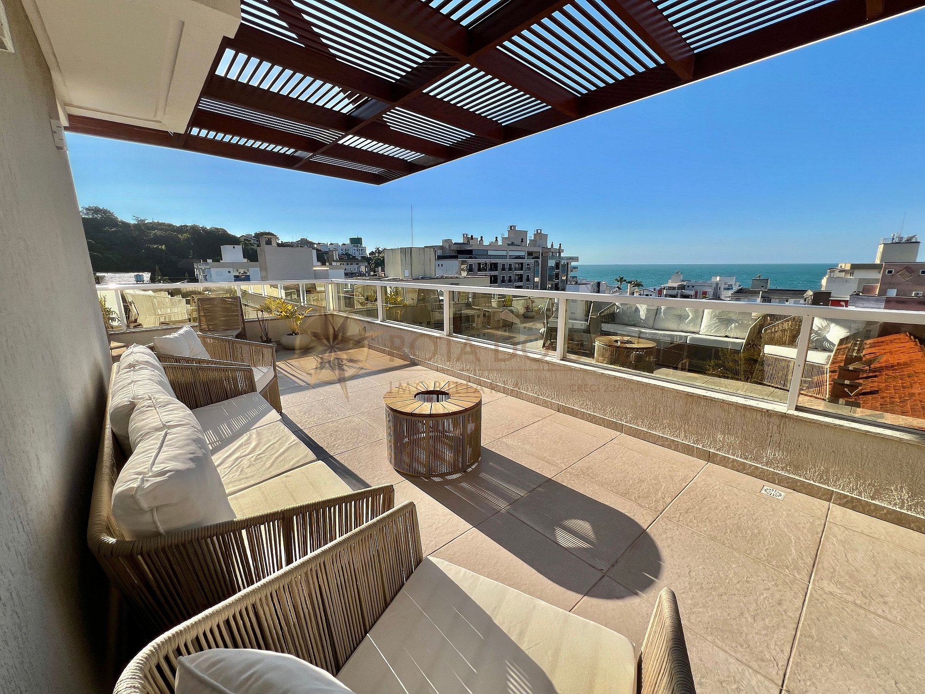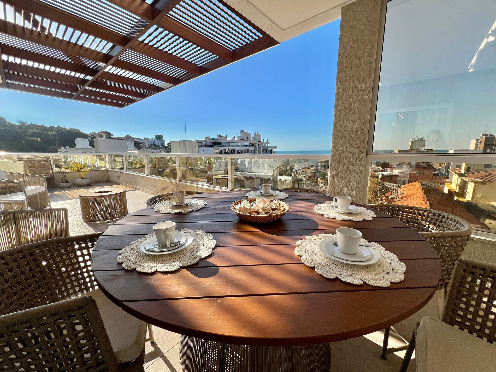 Com mobiliário de alto padrão, essa cobertura oferece conforto e sofisticação para até 8 pessoas. Destaque para o amplo espaço externo com Jacuzzi privativa, ideal para momentos de relaxamento com vista privilegiada.