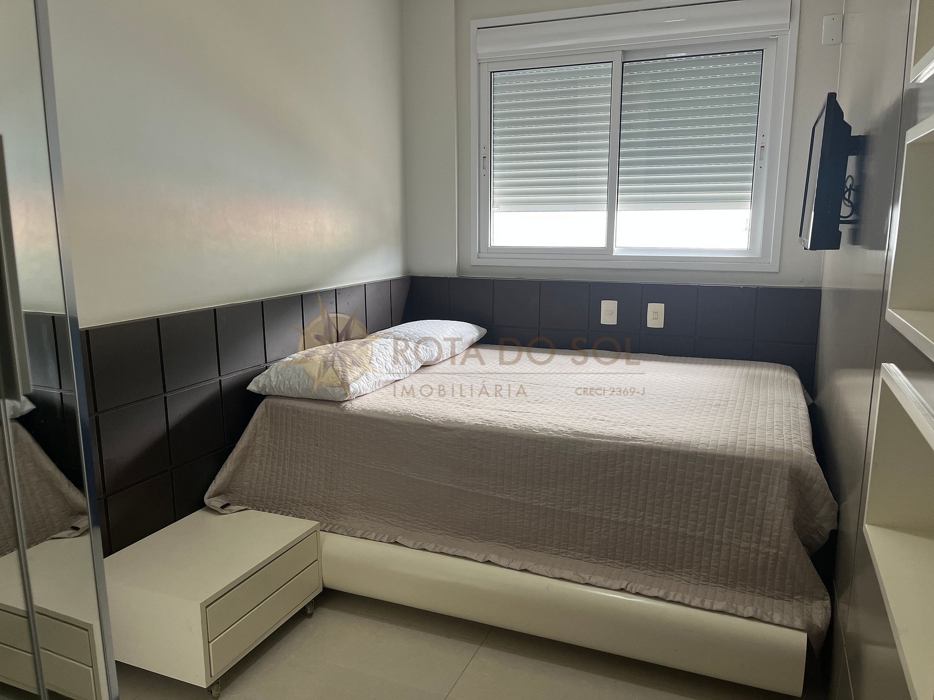 01 Dormitório com cama de casal queen e ar condicionado;