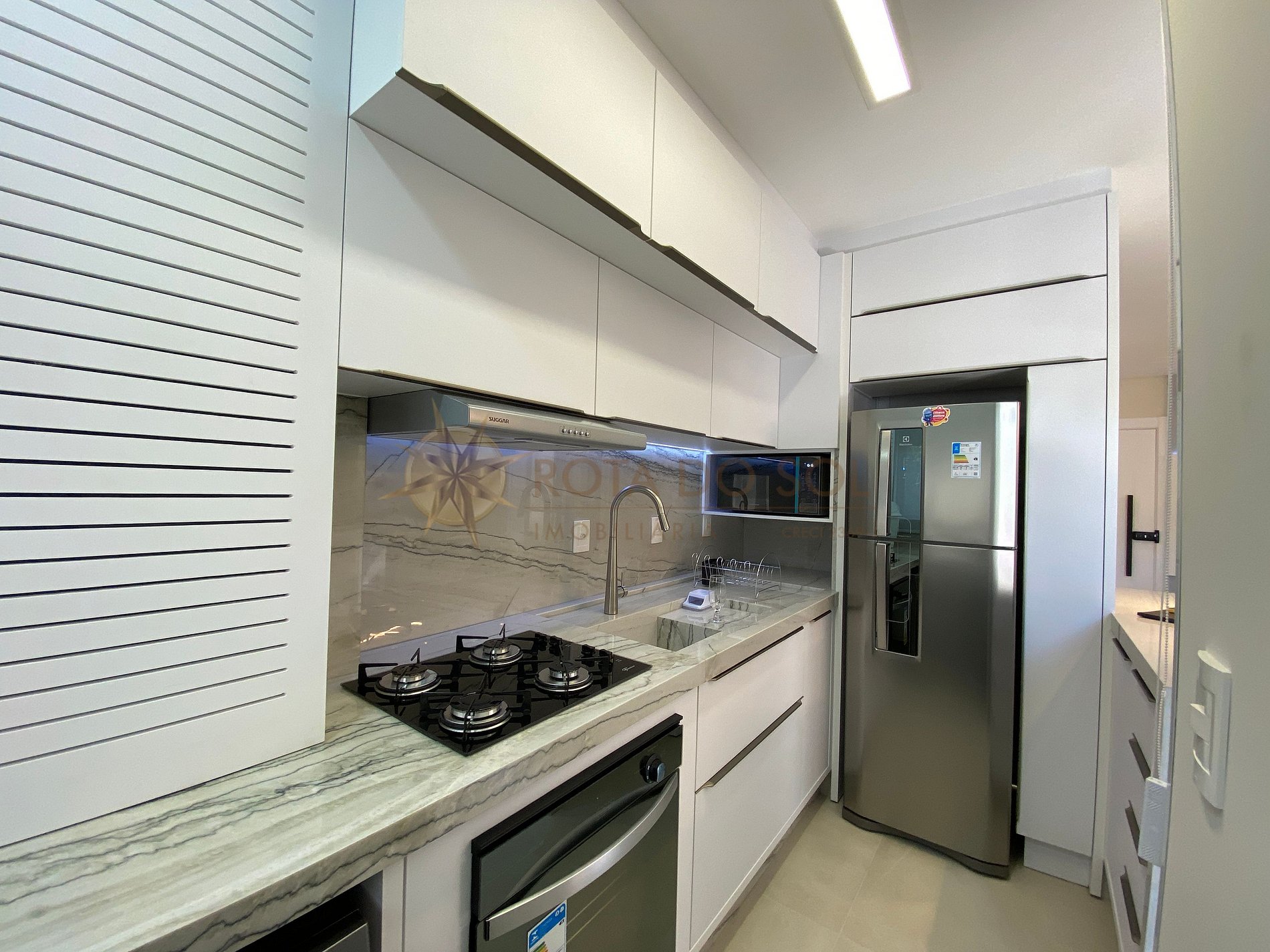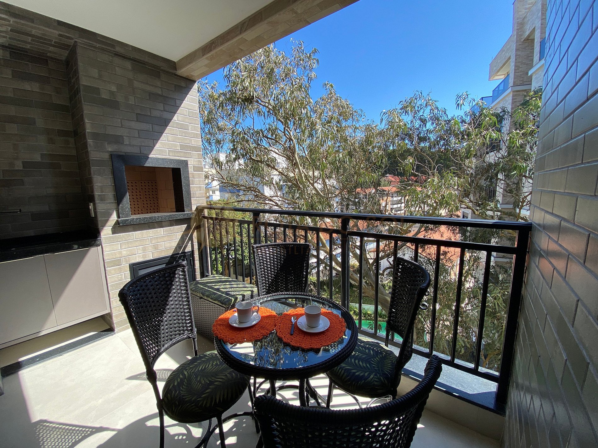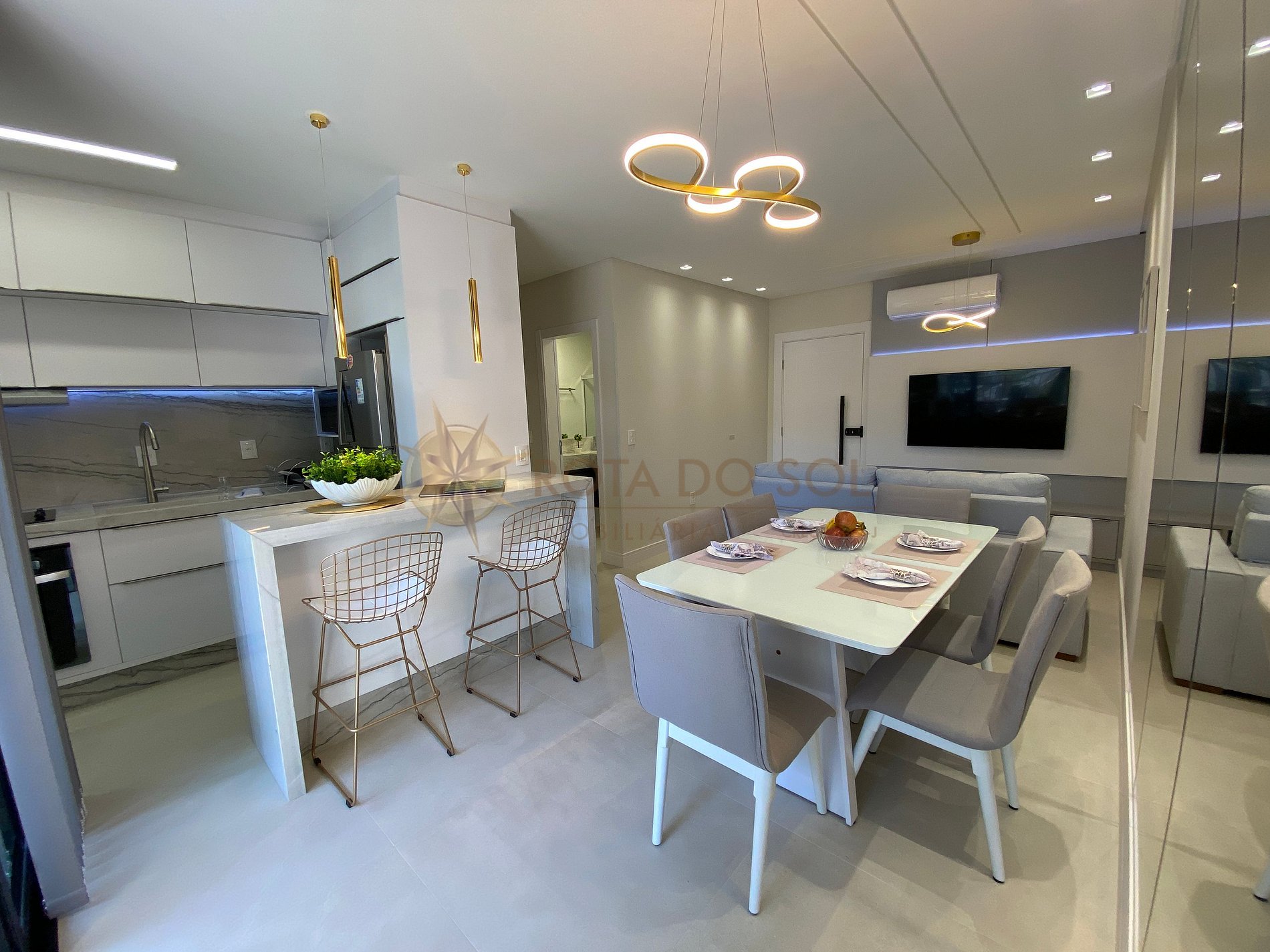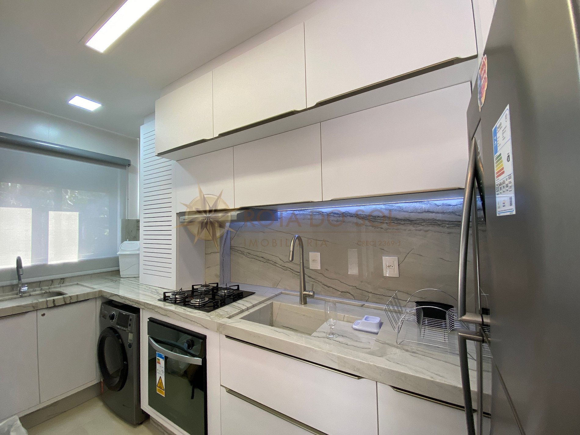 Com 2 quartos (1 suíte), sala e cozinha integradas, sacada com churrasqueira e 2 vagas de garagem. Localização privilegiada a apenas 50m do mar, no Residencial Waldegarten.