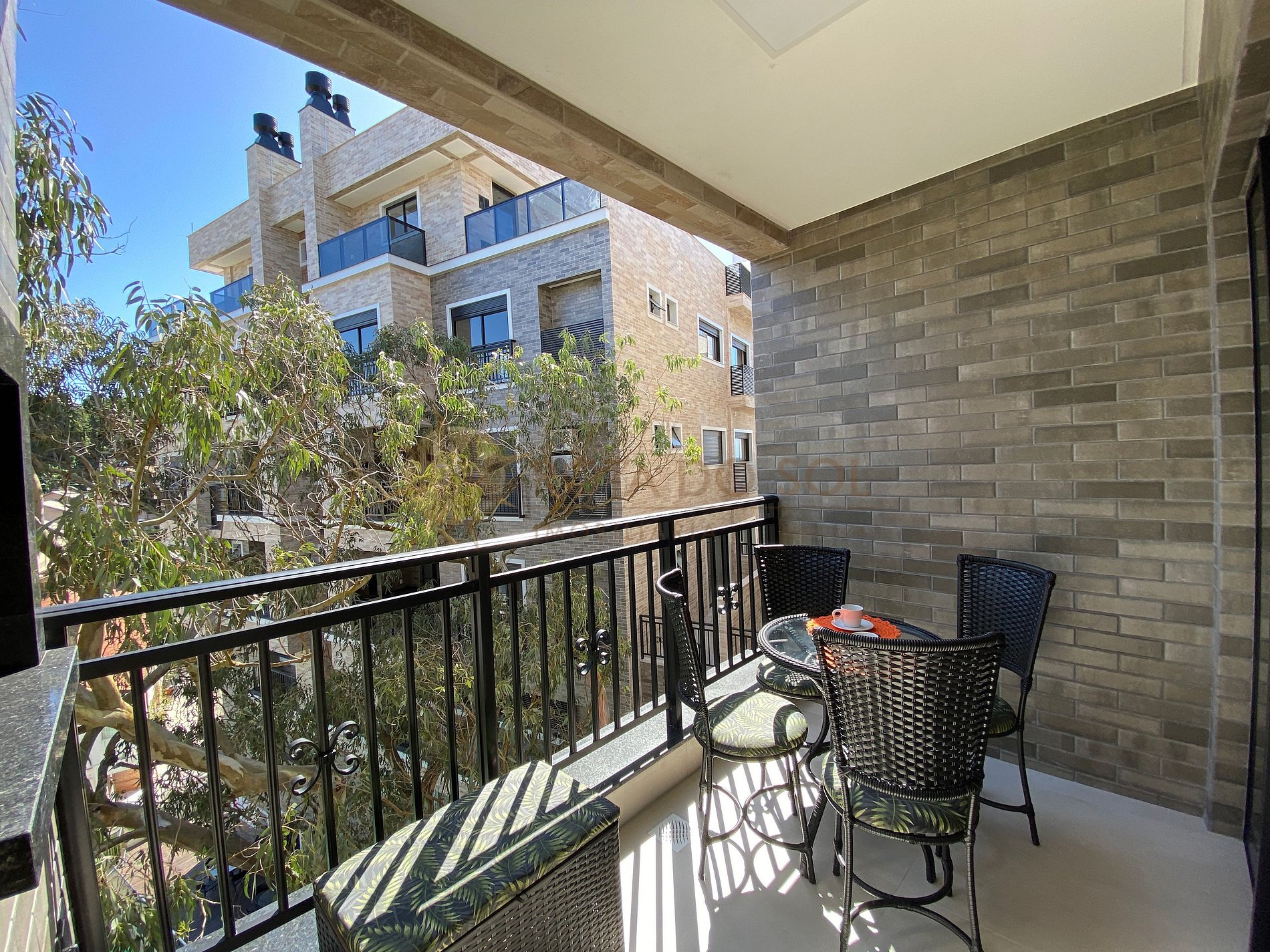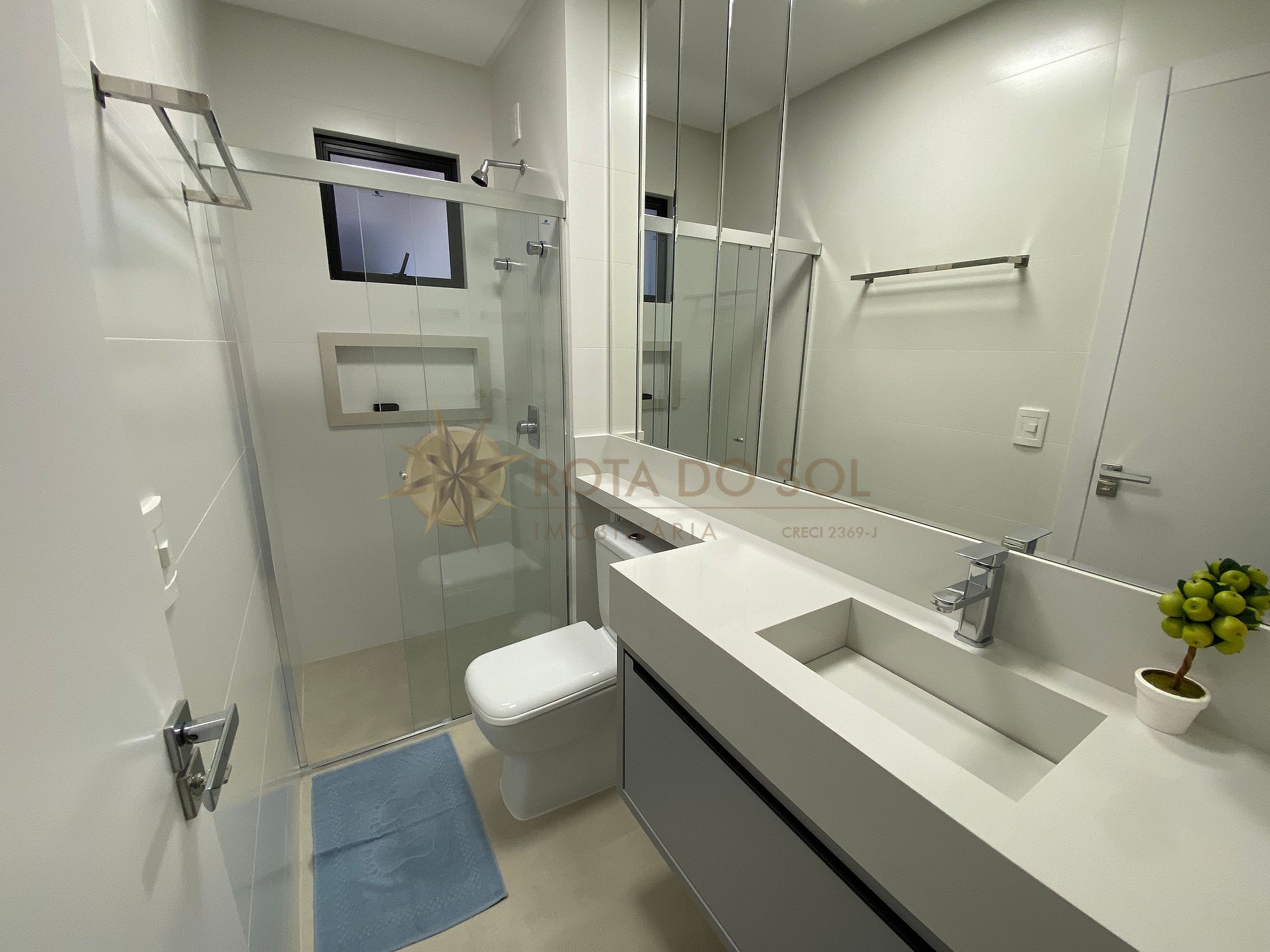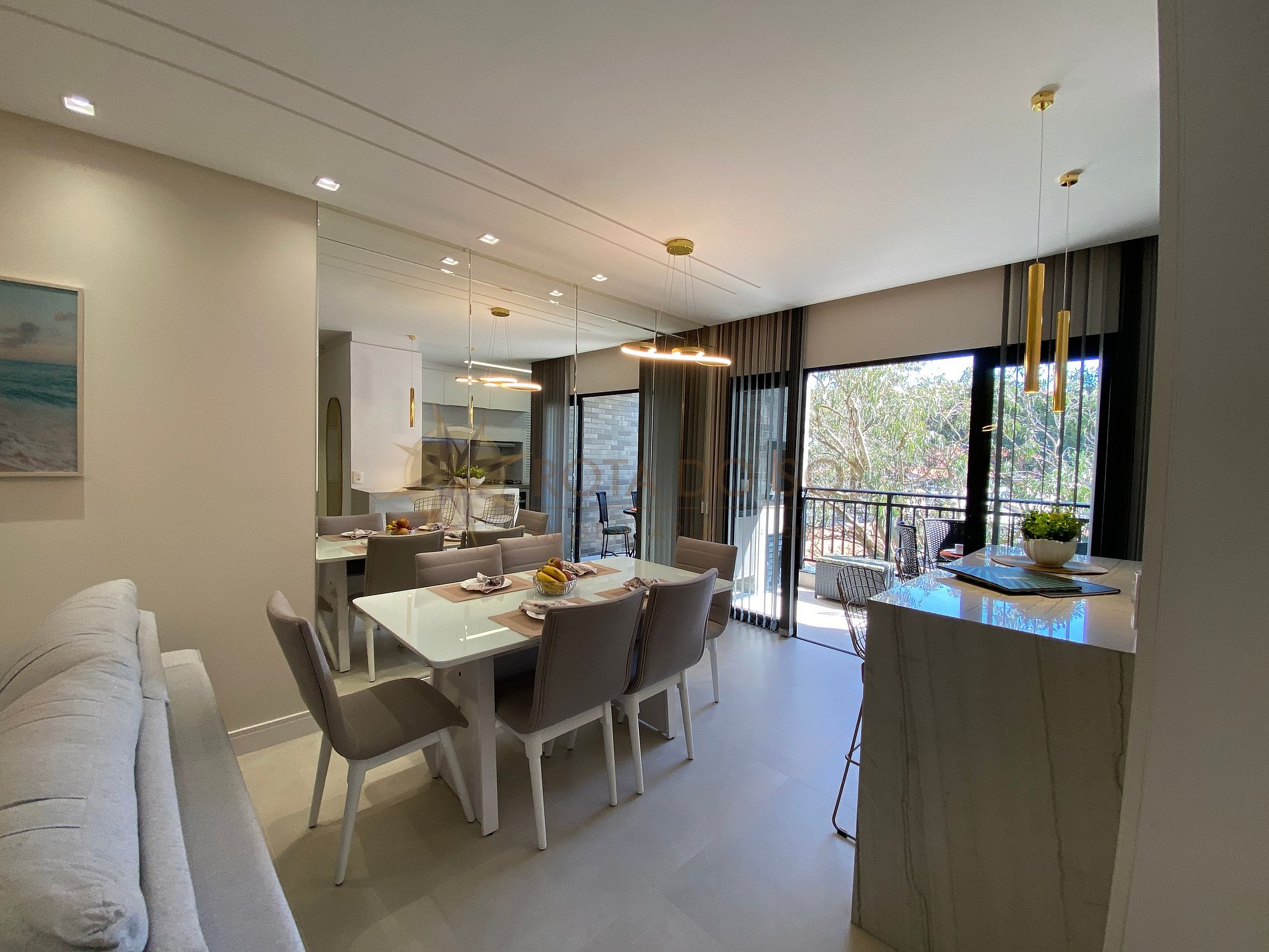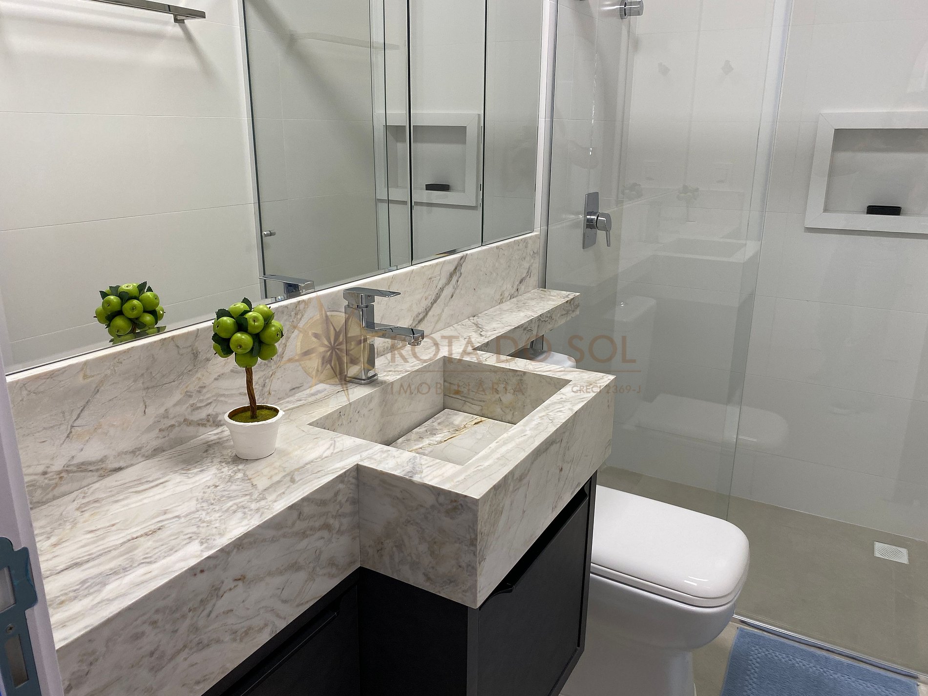 Com 2 quartos (1 suíte), sala e cozinha integradas, sacada com churrasqueira e 2 vagas de garagem. Localização privilegiada a apenas 50m do mar, no Residencial Waldegarten.
