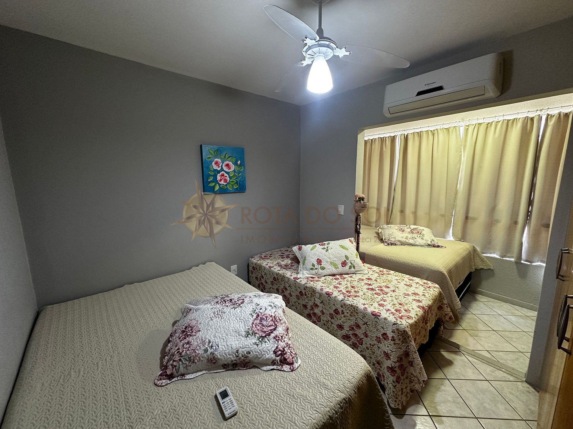 -01 Dormitório com 2 camas de casal e 1 cama de solteiro e ar condicionado;