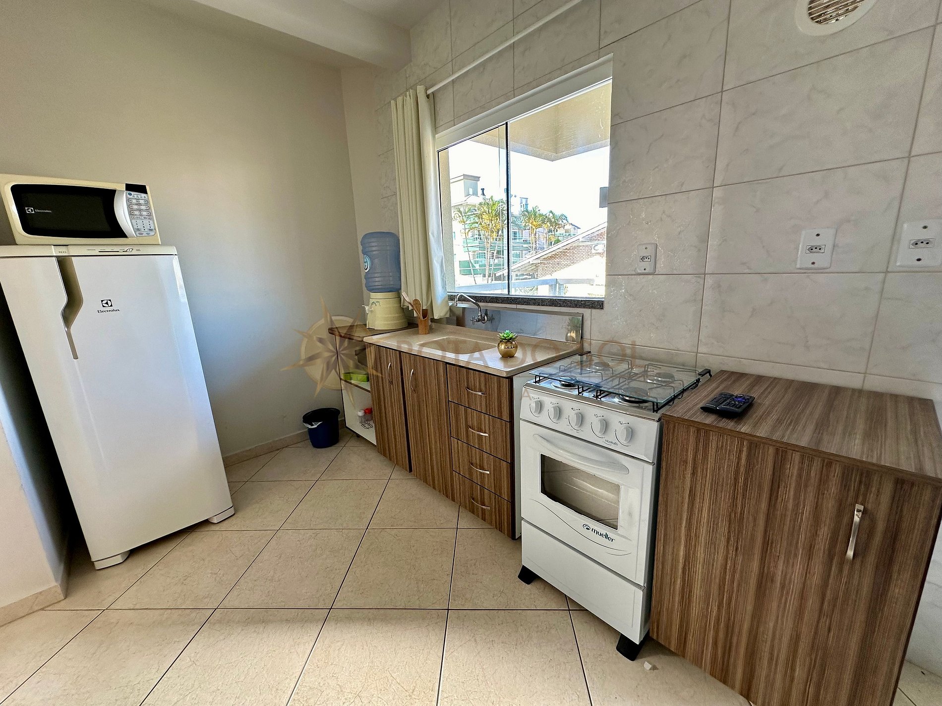 Cozinha compacta com itens básicos;