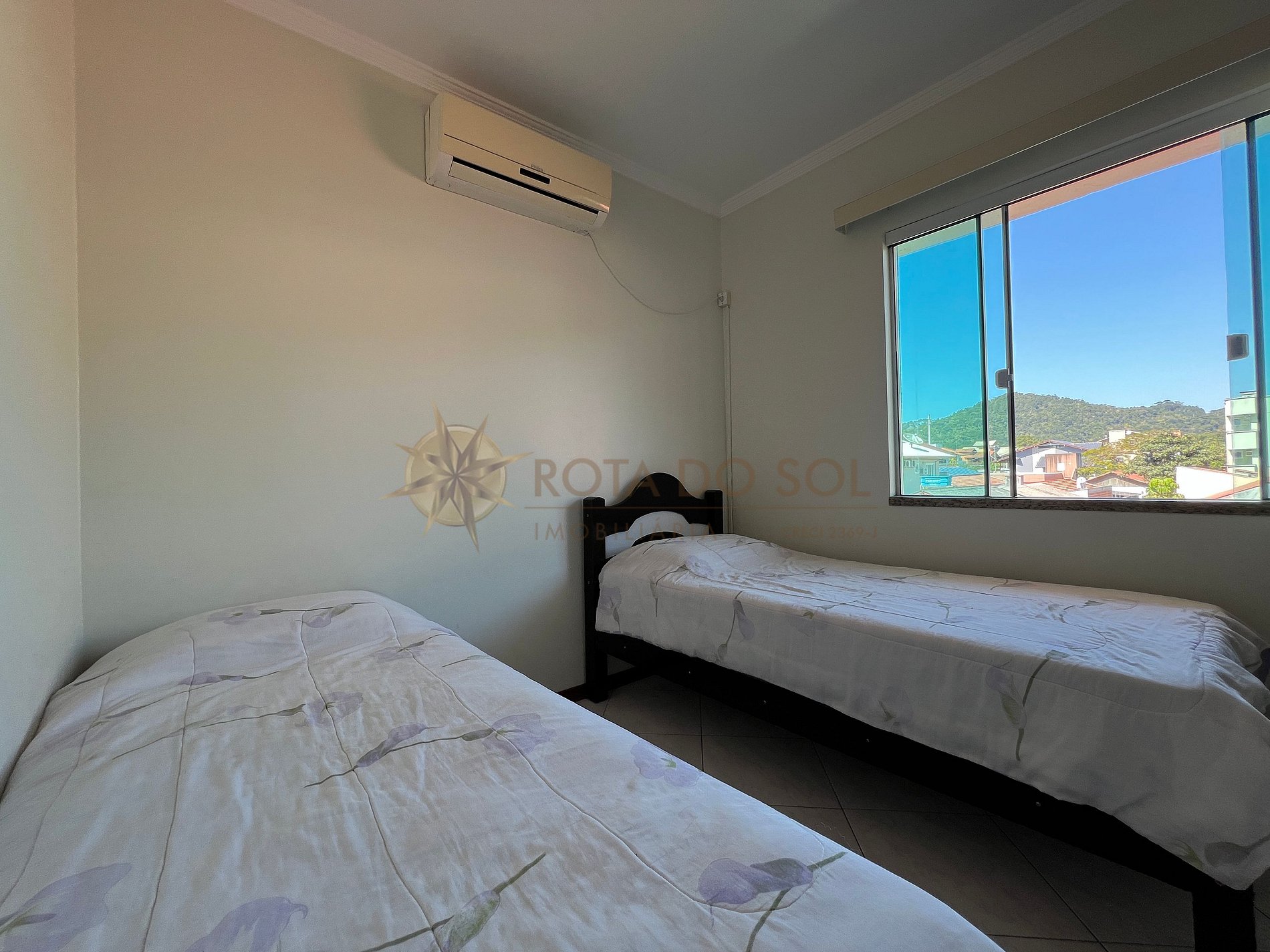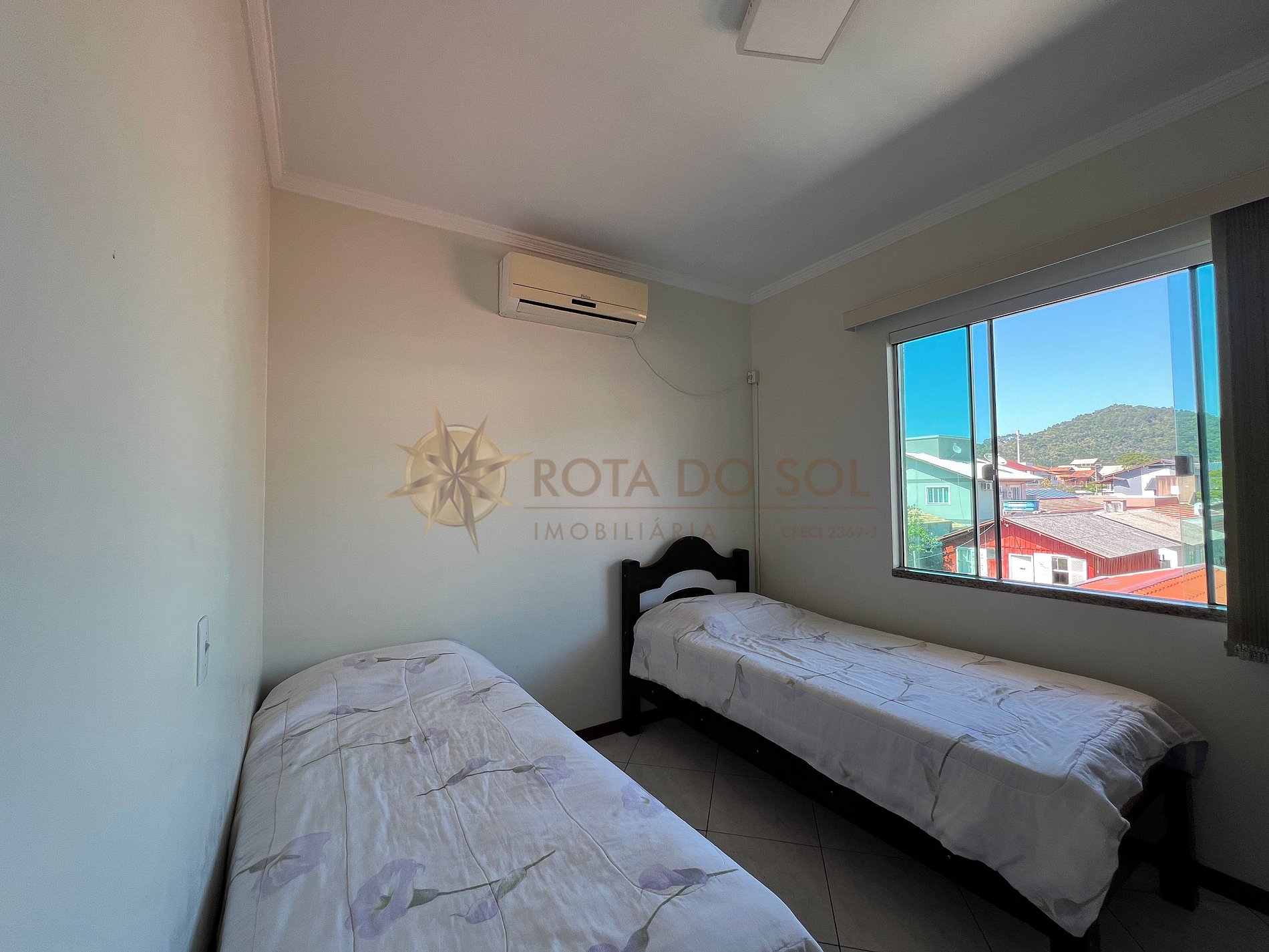 01 dormitório com duas camas de solteiro + 1 cama auxiliar, possui ar condicionado;