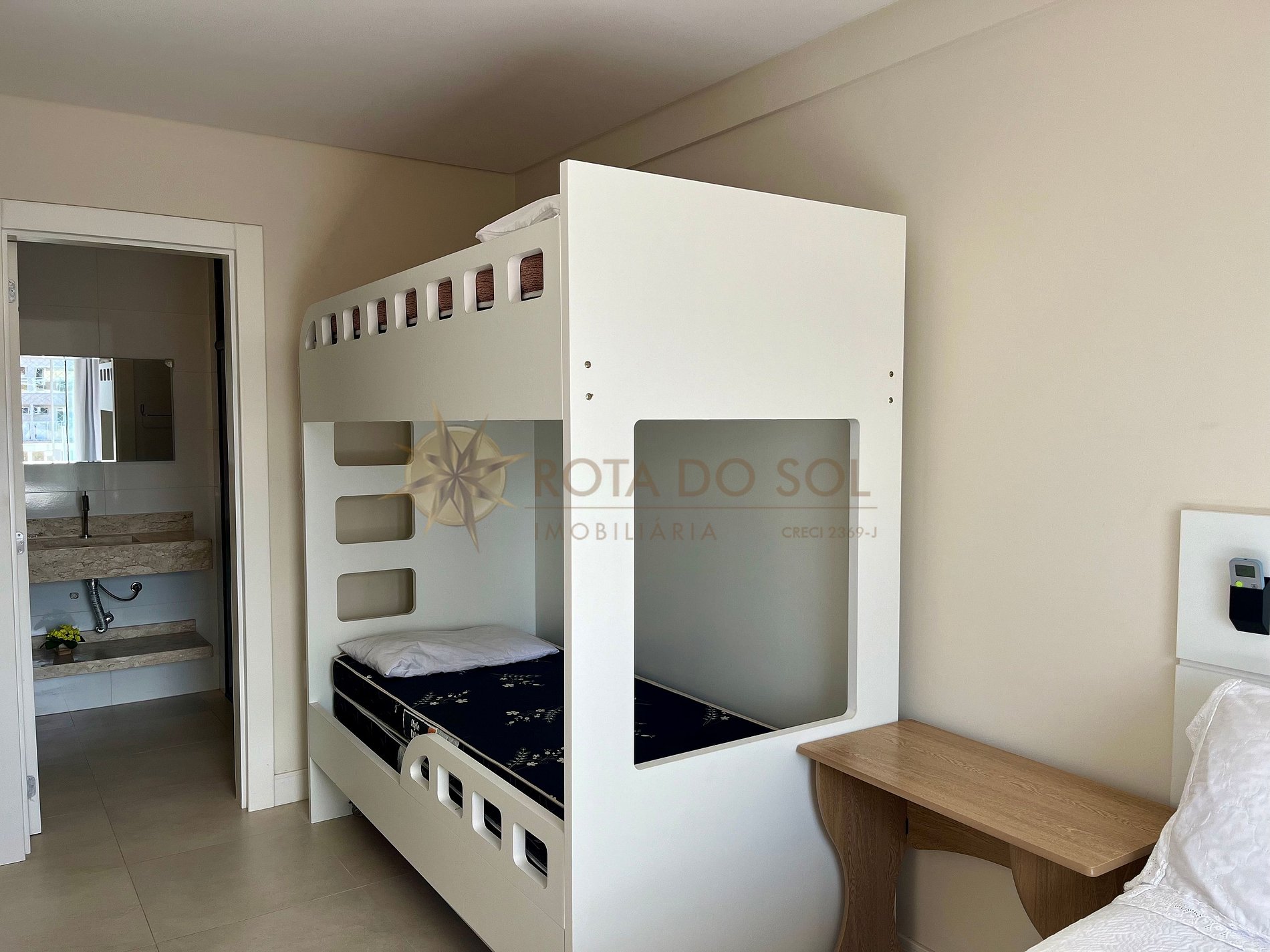 - 01 quarto com cama box de casal + 1 beliche e ar condicionado split.