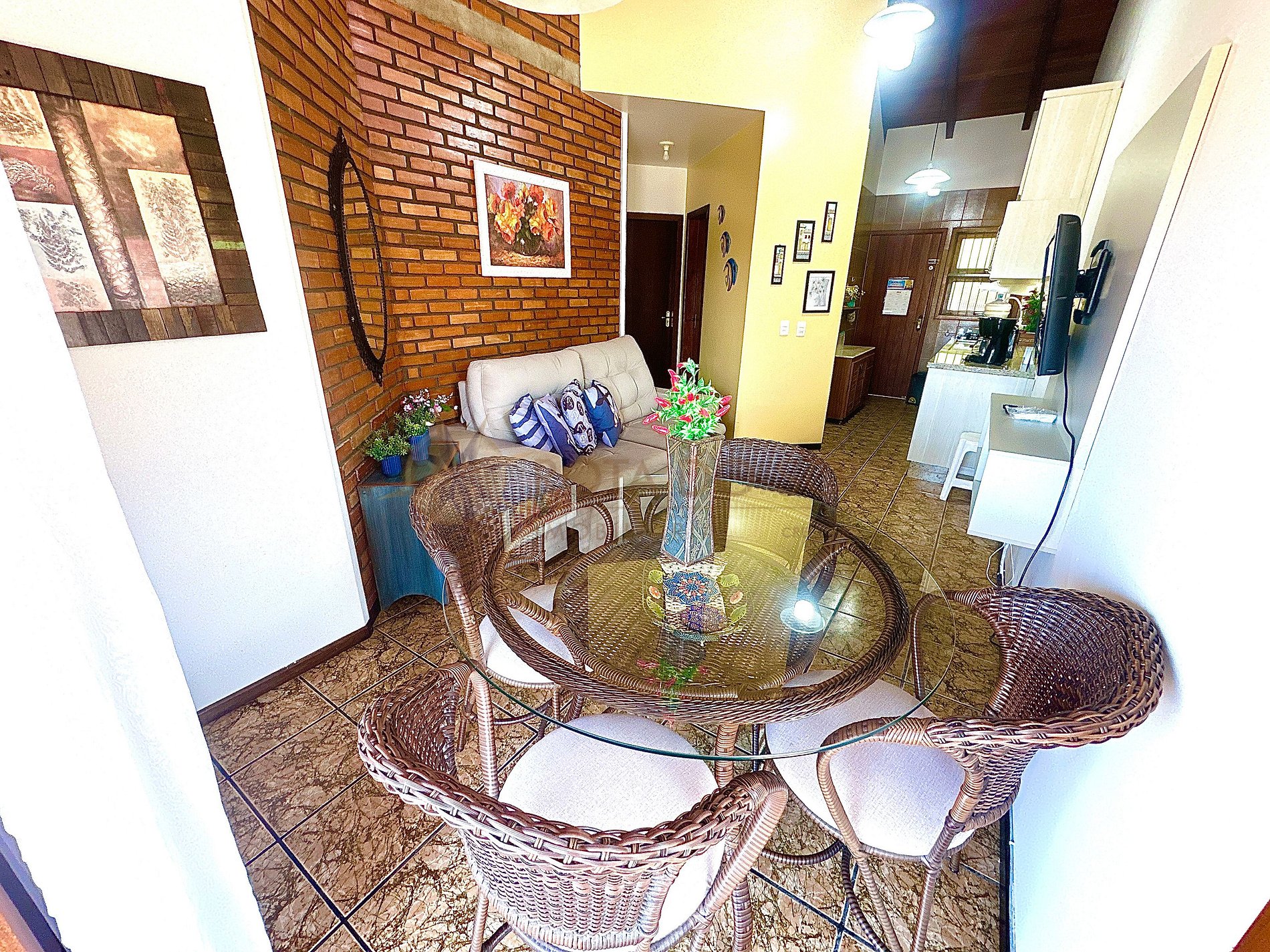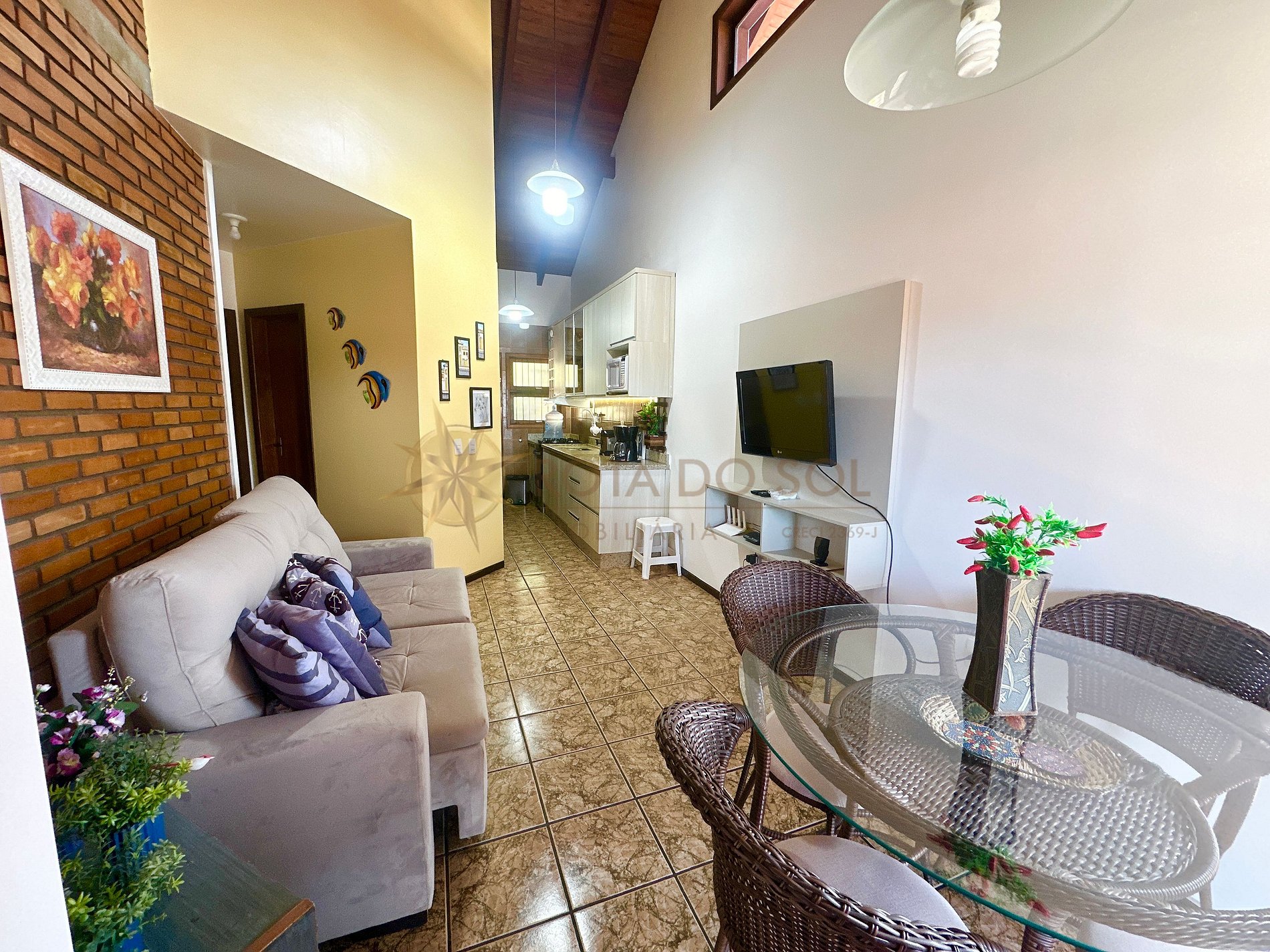 Sala de estar e cozinha integradas;