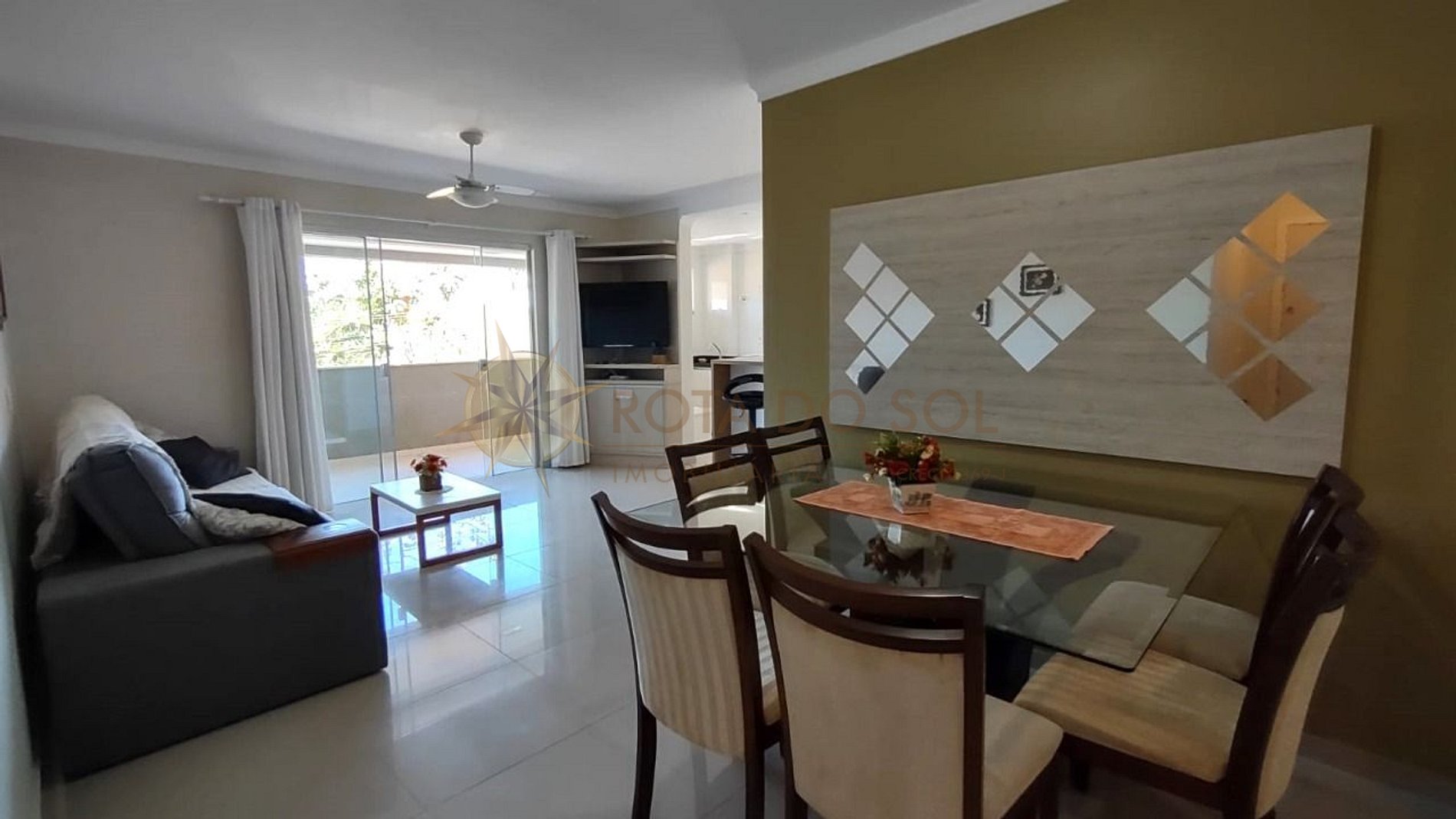 Apartamento 3 quartos, sendo 1 suíte, sala de estar e cozinha integradas, sacada com churrasqueira, 01 vaga de garagem, bem mobiliado, com acomodação para 08 pessoas.