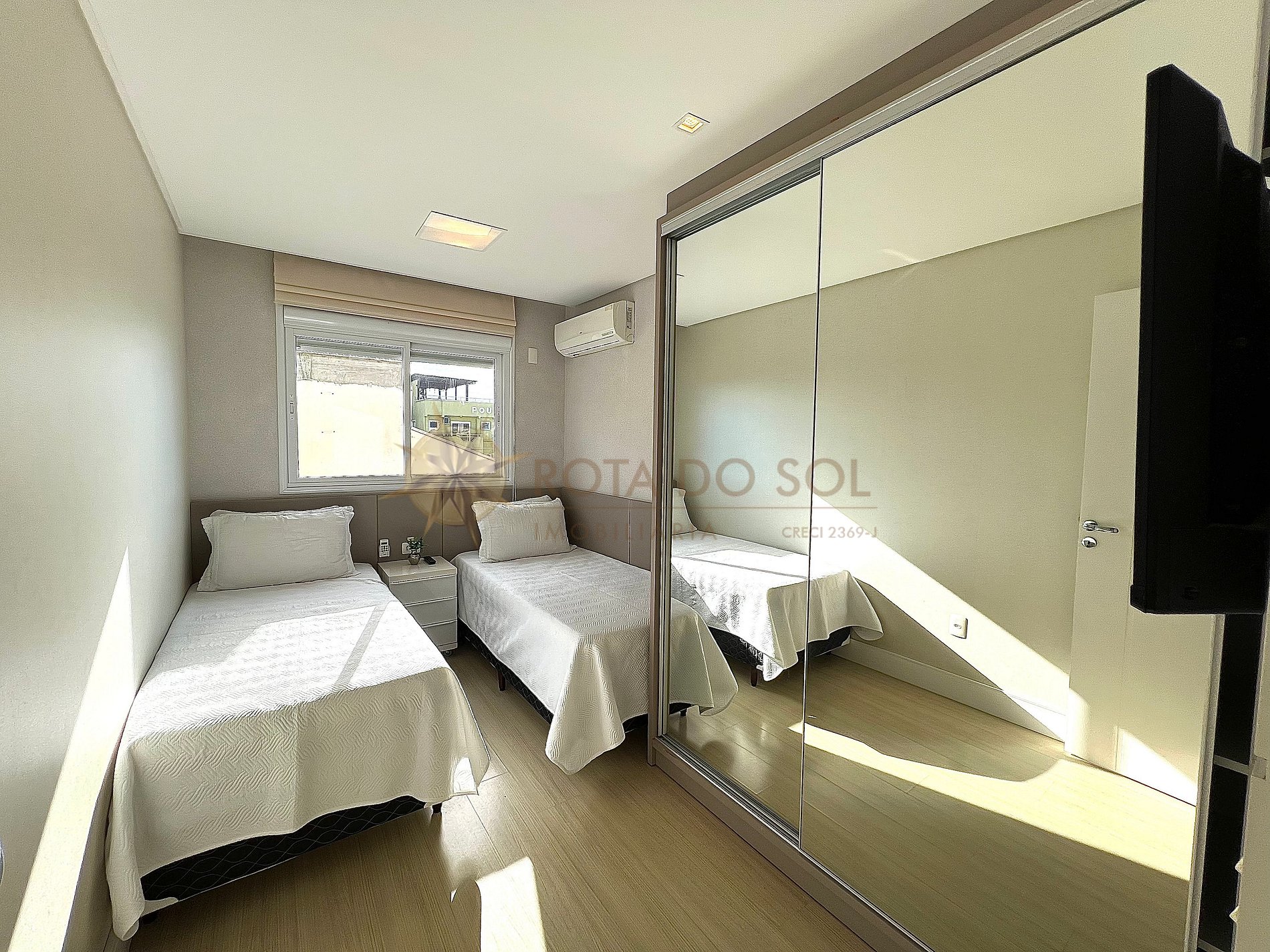 3 quartos, sendo 1 suíte, todos com ar-condicionado