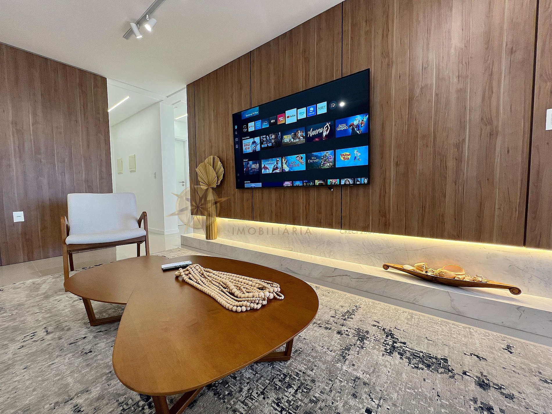 - Sala de estar integrada com sala de jantar e ar condicionado;